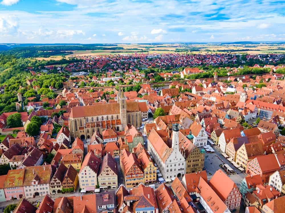 Rothenburg, meaning “the red castle on the Tauber”, is located on the Franconian Plateau in Bavaria, overlooking the Tauber.The famous “Romantic Road” and “Old Castle Road” meet here.