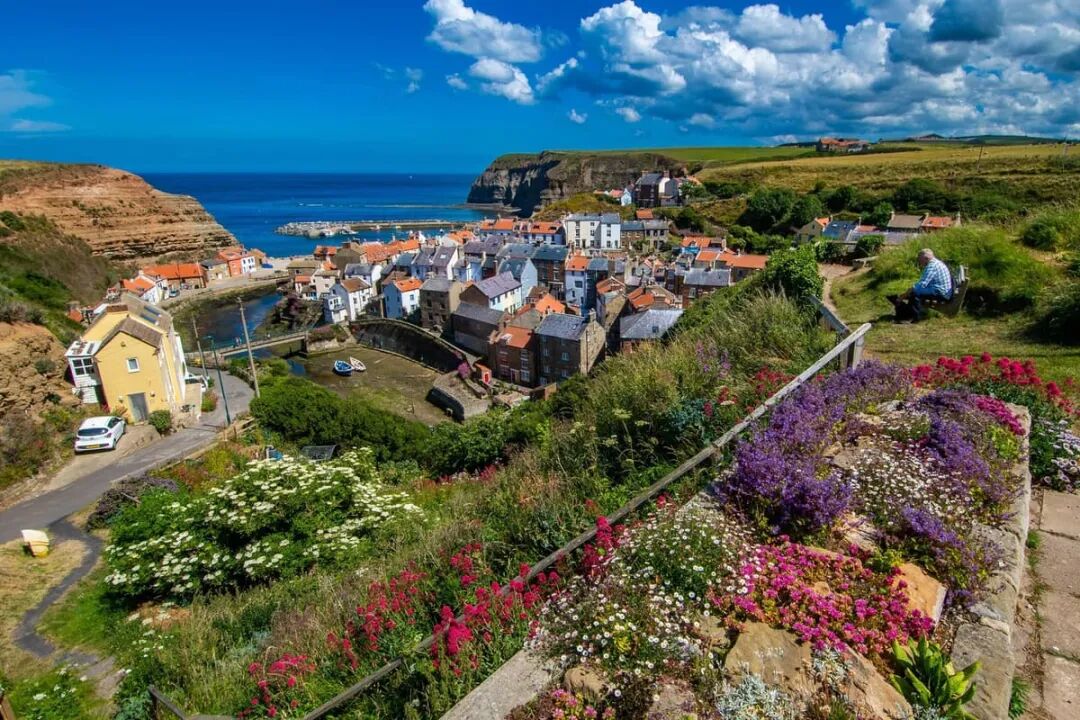 On the magnificent North Yorkshire coastline, picturesque Stathers nestled beside a natural harbour. Colorful huts cascaded on clay cliffs overlooking the vast North Sea.