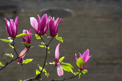 The petals of purple magnolia flowers are purple outside and white inside, gorgeous and pleasant, with elegant fragrance. Its tree shape is graceful, with lush branches and flowers, and it is beautiful when planted alone or in clusters.