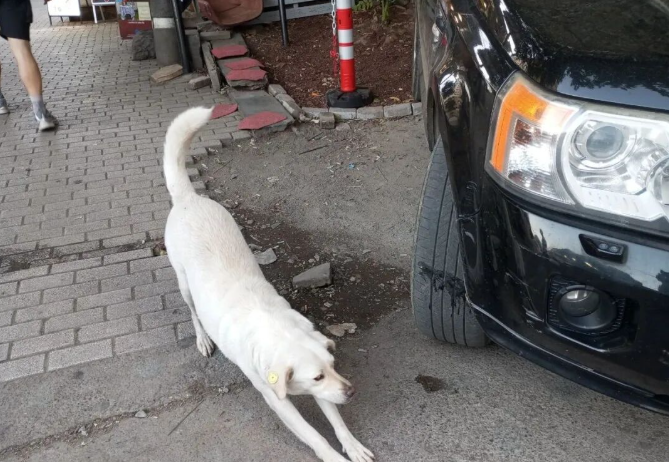 But Hanhan is really silly. After running across the road, he continued to follow until he left the big dog’s “sphere of influence” and quickly ran back to this side of the road.