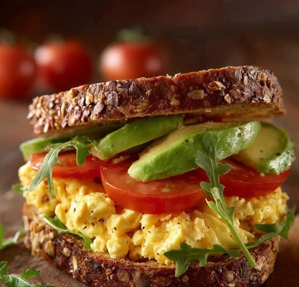 First layer (eggs): Spread with a thick layer of creamy scrambled eggs.