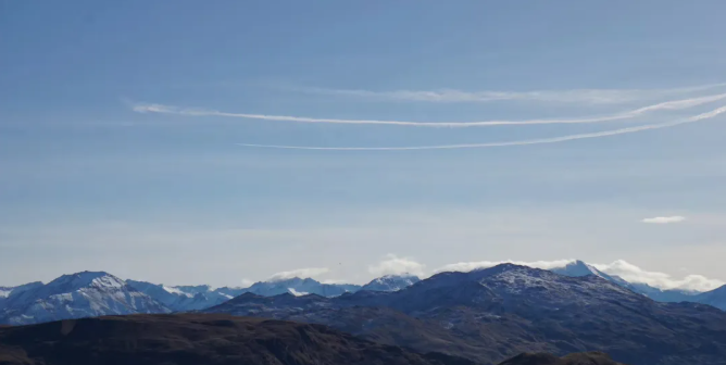 (Aircraft track seen from the top of the mountain)