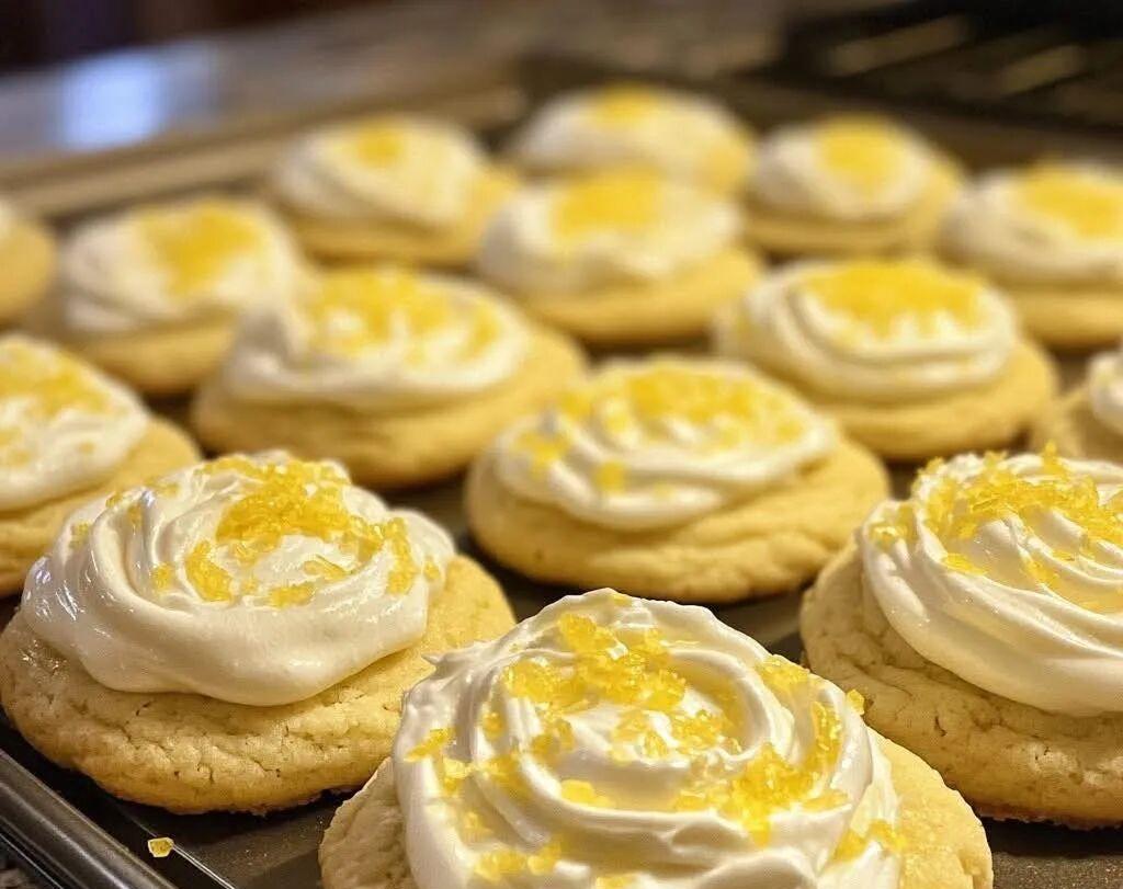 Once the cookies have cooled completely, coat each cookie with a proper amount of lemon cream frosting.