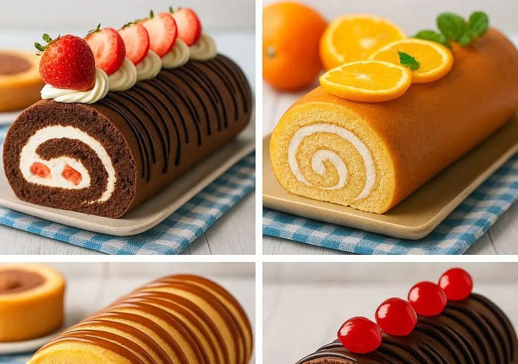 7. Fill the cold sponge cake with cream, roll it up and garnish with orange slices and mint.