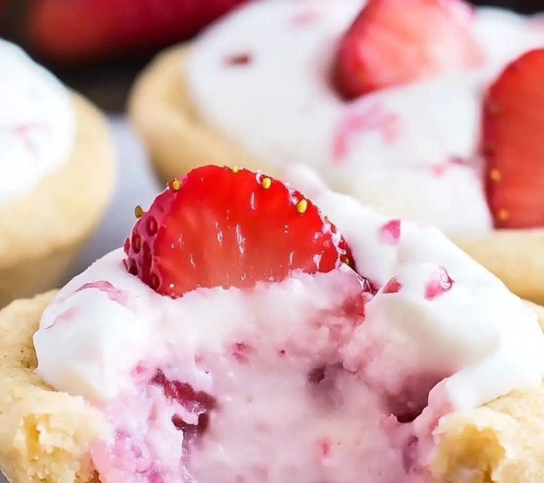 Squeeze the cheesecake filling into each cooled cookie cup.