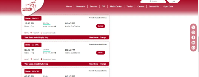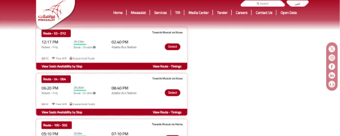 Oman’s state-run bus company namedMwasalat, its booking official website is: https://mwasalat.om