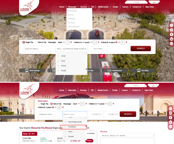 2. Select a pickup location: Returning to Muscat from the “bridgeside” stop near Nizwa CastleFew shifts, it is not recommended to wait here. The safest way is to go back toNizwa Firq StationBus, there are relatively more trains.