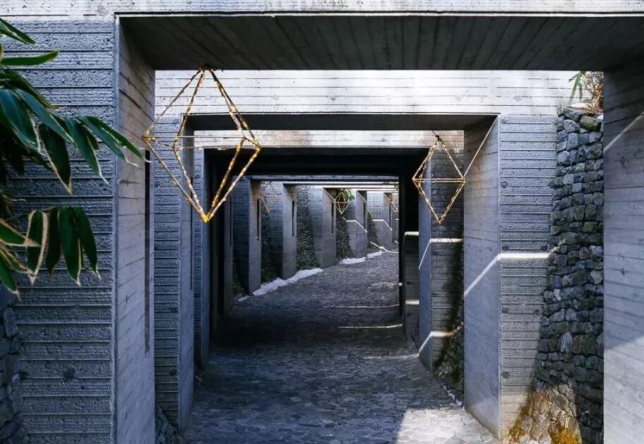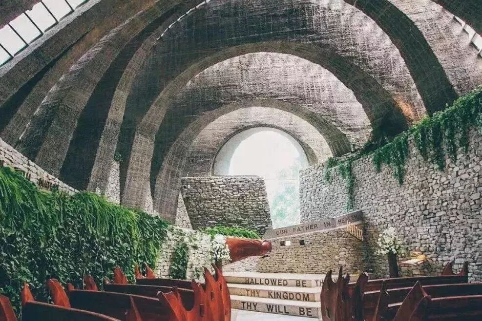 The whole building exquisitely condenses the five natural elements of stone, light, water, green and wood in the spatial structure-the thickness of stone carries quietness, the light flows through the glass and breathes, and the whispers of flowing water runs through it. Surrounded by greenery and trees, it jointly interprets the design philosophy of “* * natural church * *”, which makes people feel like being between heaven and earth in the building.