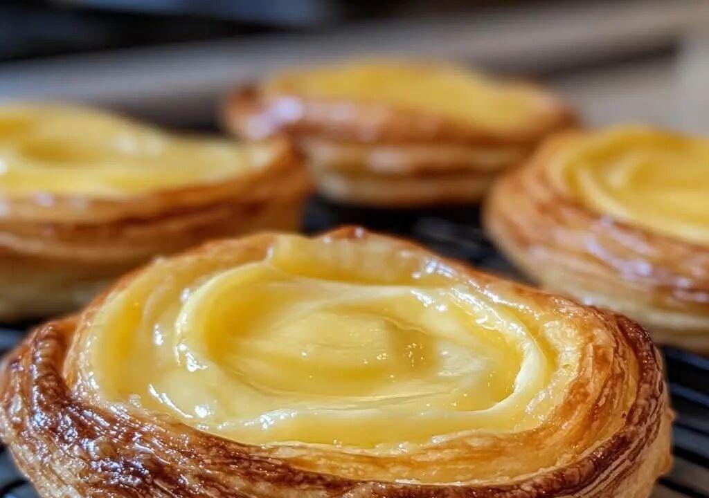Make pastry: Roll out the dough on a floured surface and cut into triangles or rectangles depending on the desired pastry style. Place a little pastry cream in the middle of each dough and roll it up.