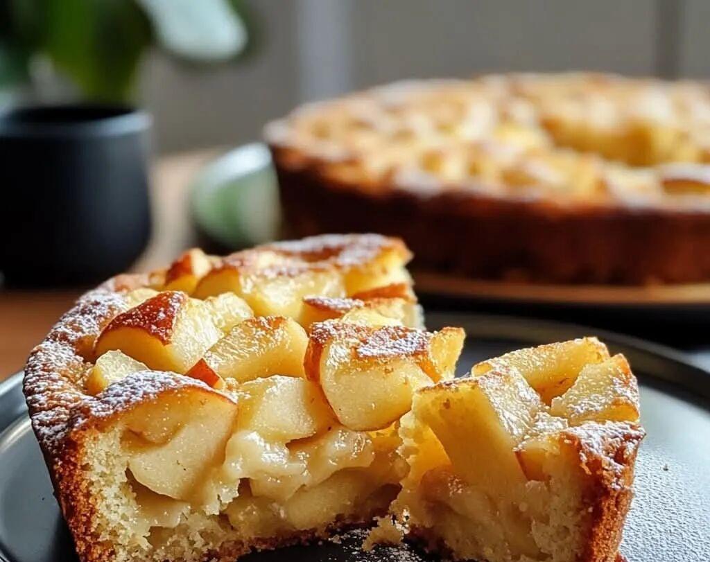 Add apples: Pour half of the mixture into the prepared pan. Top the mixture with a layer of apple slices. Then pour in the rest of the batter and top with more apple slices and pattern if desired.