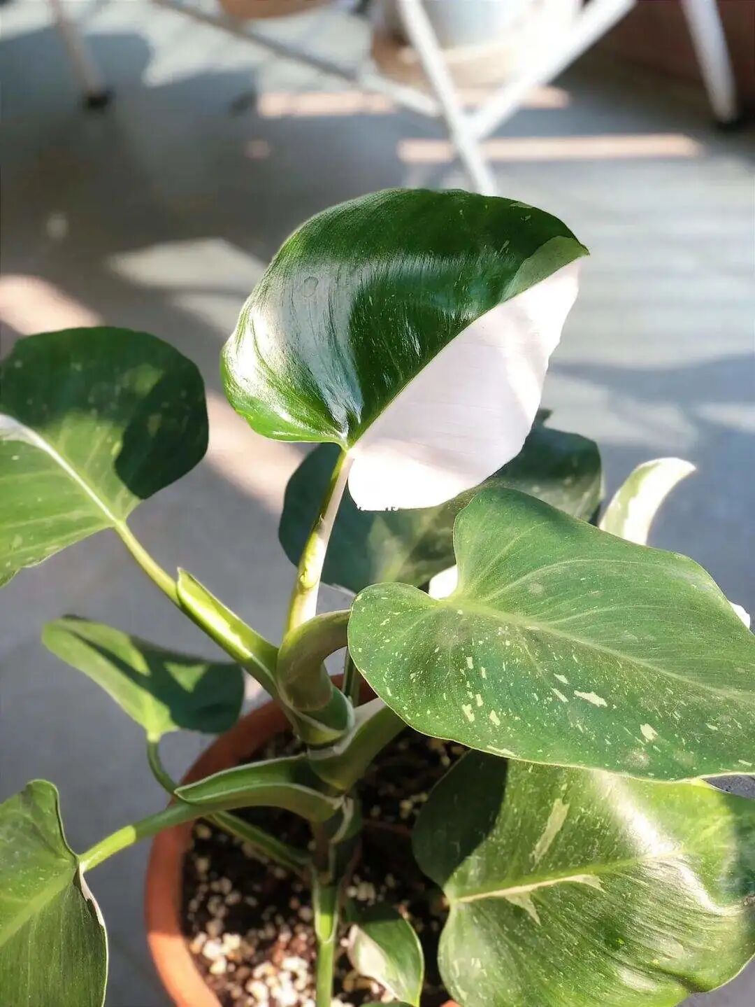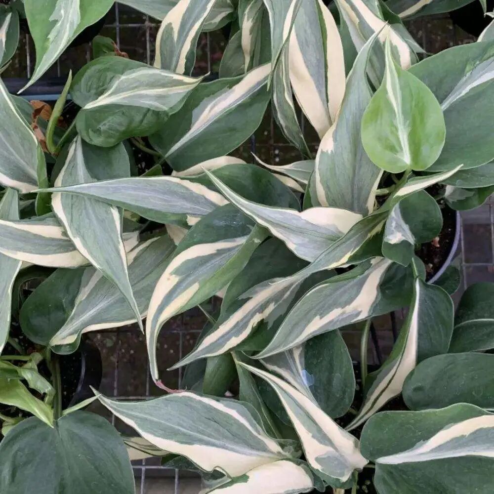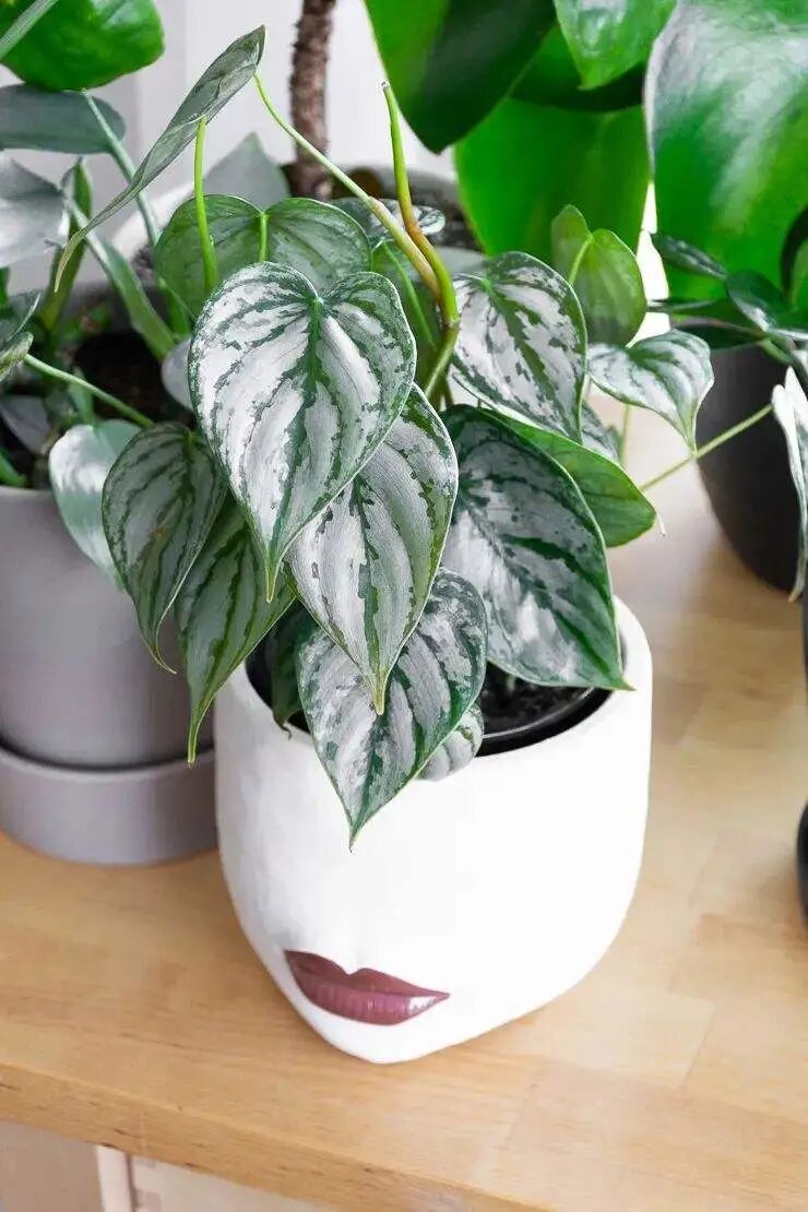 The plants of platinum vine green velvet are plump and full, its leaves are long oval, the old leaves are dark green, and the new leaves are white, with many white pinstripes, which is very attractive.