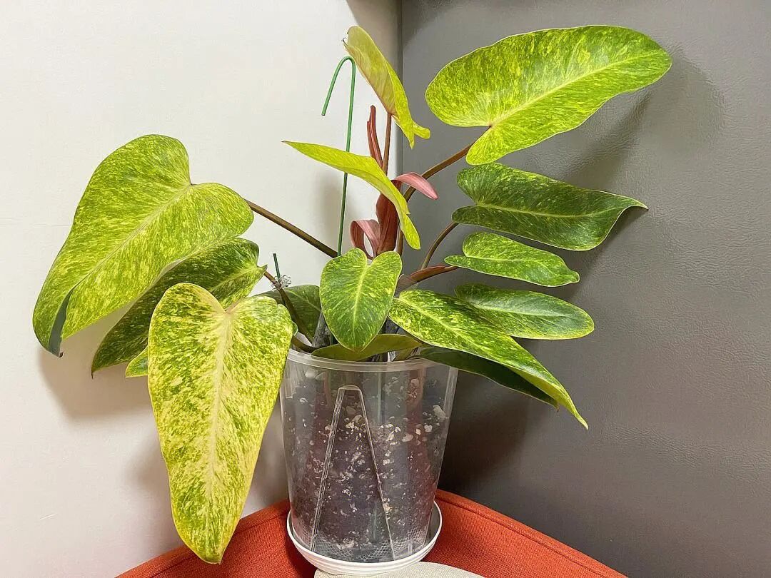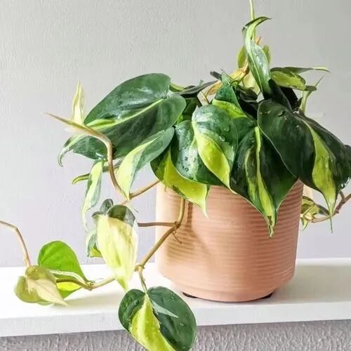 Brazilian golden thread vine green velvet is a brocade variety of heart-leaf vine green velvet. The heart-shaped leaves have yellow or golden stripes, and the area of brocade spots is variable. Sometimes the whole leaves may be yellow or golden, and some new leaves have beautiful light red.