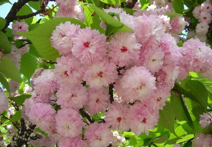 Chrysanthemum cherry is the kind of cherry blossom with the most petals, and Kenrooken Chrysanthemum is also a variety with the most petals in Chrysanthemum (The petals are basically more than 300, and some can reach 600) , flowers and leaves bloom together ( Flower diameter about 4 cm) , the flower color is pink. Flowering period mid-April.