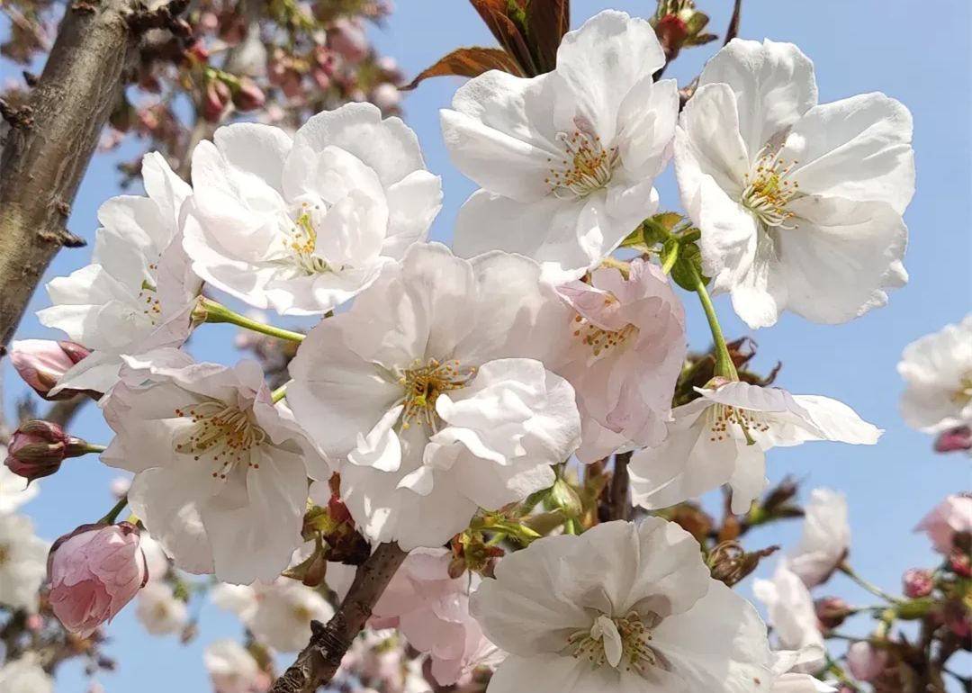 Wang Junhe Taixiang Sakura is famous for its fragrance, which is strong and strong, refreshing and can spread far… It has the reputation of “the king of cherry blossoms”. Bloom white single-petaled flowers (with 5-8 petals) 。