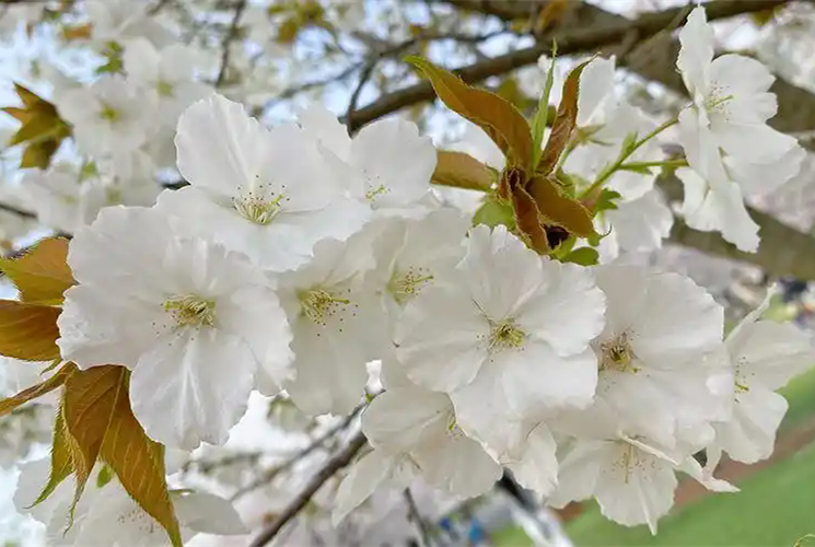 The flower is as its name suggests, Thousand miles cherry is also a cherry blossom variety famous for its fragrance, with flowers and leaves blooming together, and white single-petaled flower with 5 petals ( The phenomenon of stamen petalization is often found) , flower diameter 3.2-4. cm, The floral fragrance is rich, It’s refreshing 。 Flowering period in early April.