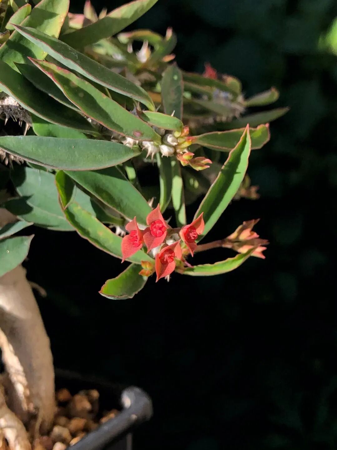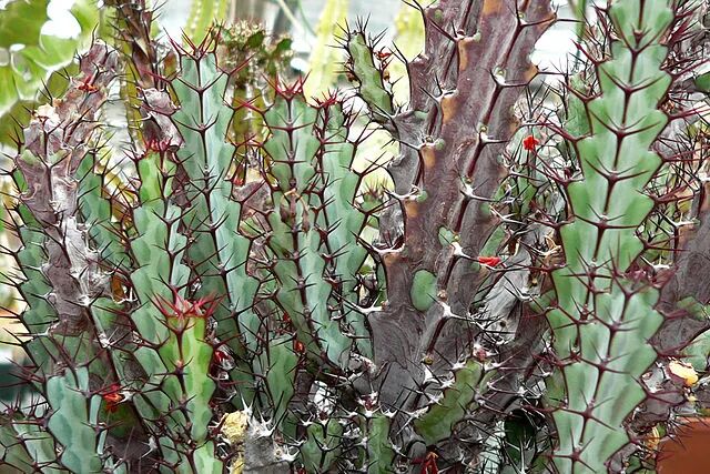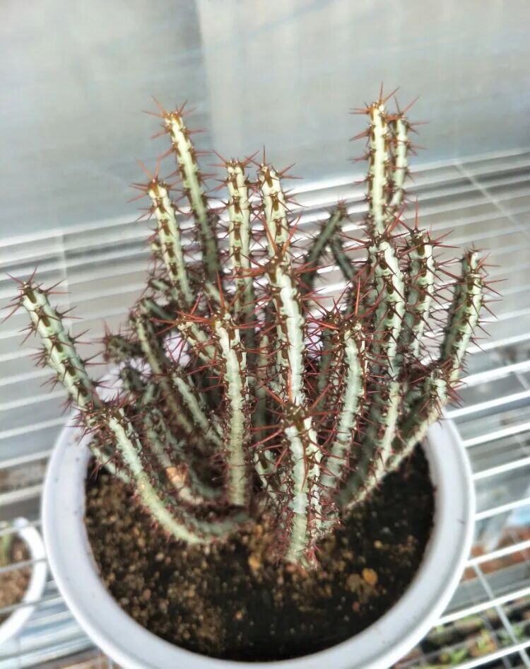 greenwayi Kirin is native to greenwayi, hence its name. The 4-ribbed stem is green to blue, with keratinized ridge shields on the edges of the ribs, long red thin thorns (thorns will turn black with age), and occasionally small leaves can be seen.