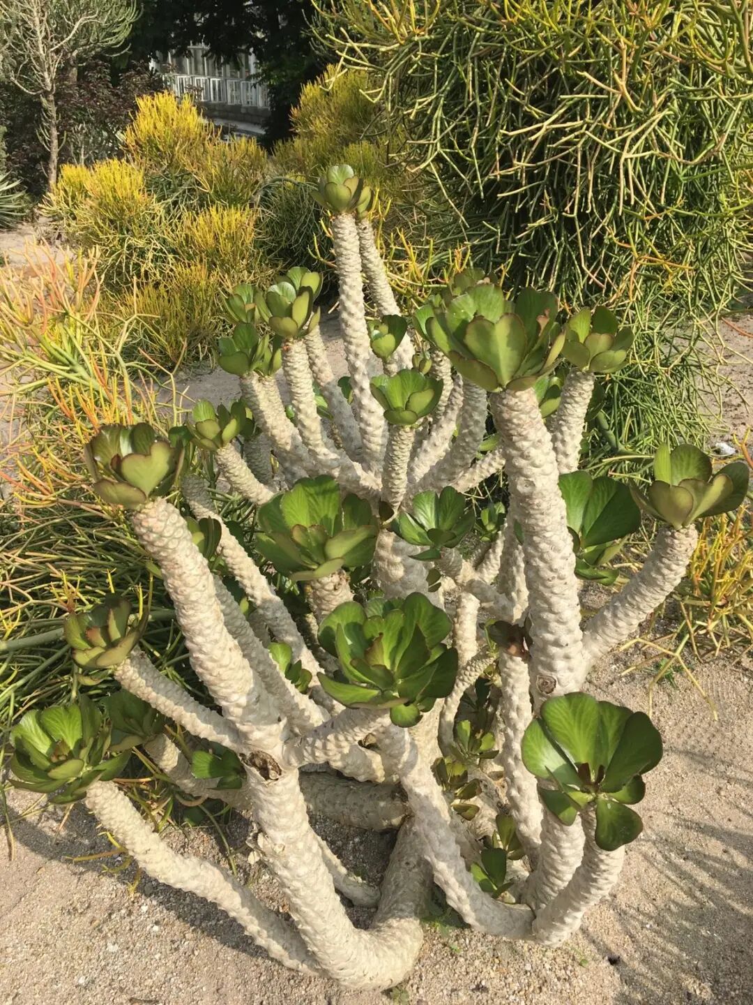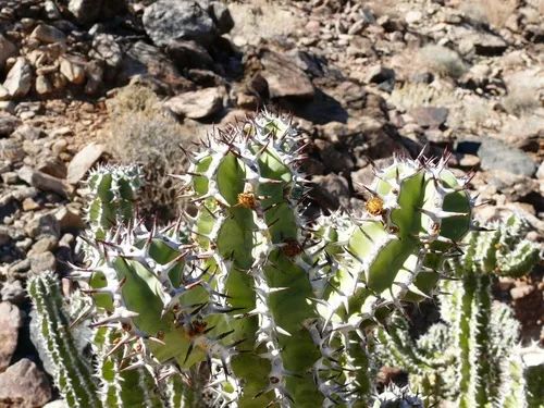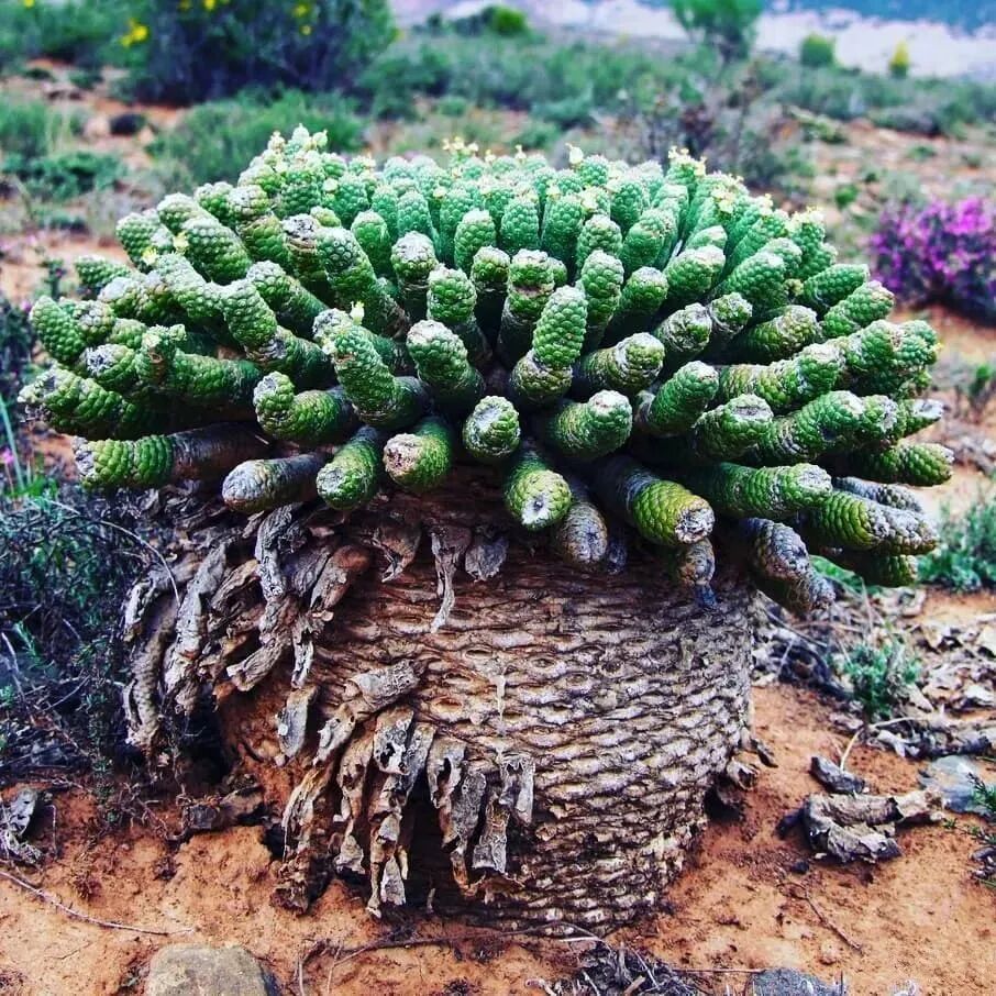 The unicorn has an obvious tuberous stem. The bottom surface is scaly and gray, and there are many columnar branches around it. The branches are generally green and can also be sunned red.
