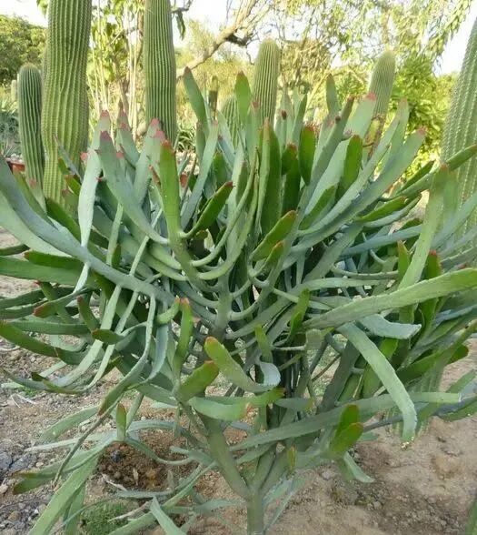 Candle unicorn grows very tall (the plant height can reach 10 to 20 meters and the plant width can reach 2 to 3 meters), with 4-5-ribbed stems columnar, medium green to dark green, branched, and shaped like a candlestick or pagoda, also known as a candlestick.