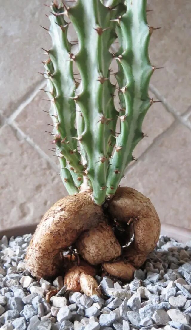 The dog slave unicorn has a distinct tuberous rhizome, and the top clusters of many green upright branches, 3-5-ribbed, with fine thorns. Because of its unique rhizome, it is often appreciated as a bonsai.