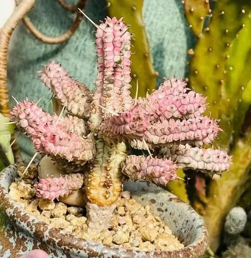Birch unicorn, also known as jade scale phoenix brocade, is a brocade variety of jade scale phoenix with high appearance. 7-17 The ribs are cream-colored, pale green to pink, quite beautiful and thorny. The shape is somewhat similar to corn on the cob.