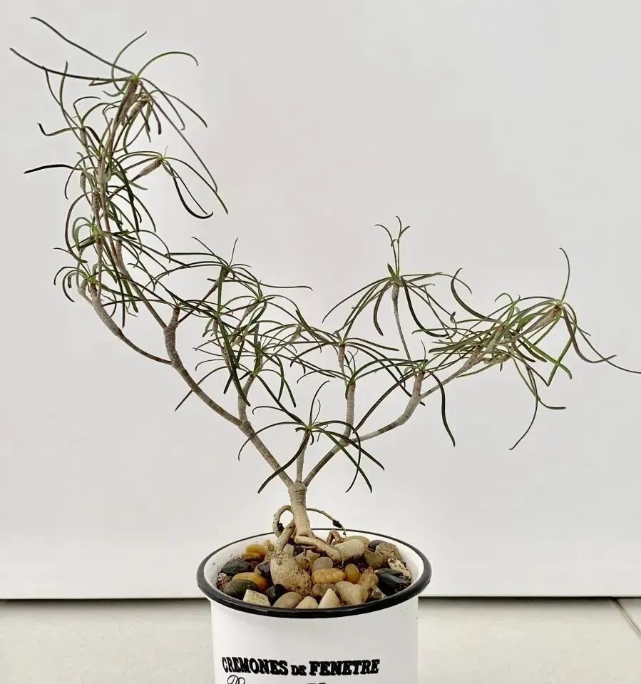 There are many branches clustered at the top of the stem of Roche unicorn, which are densely covered with long thorns. In spring and summer, slender green thin leaves will grow, and in winter, the leaves will fall off, leaving only thorny branches.