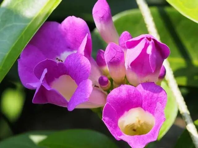 Of garlic vine After the flowers and leaves are rubbed, they smell of garlic, hence the name “Garlic Vine”. AKA Purple bell vine, Zhang’s purple blade.