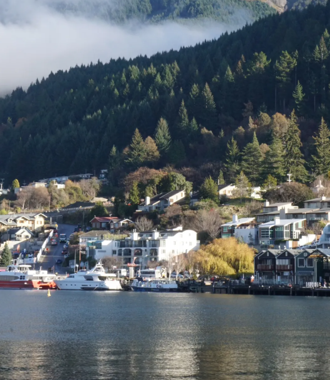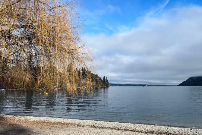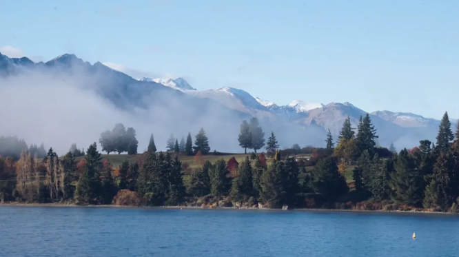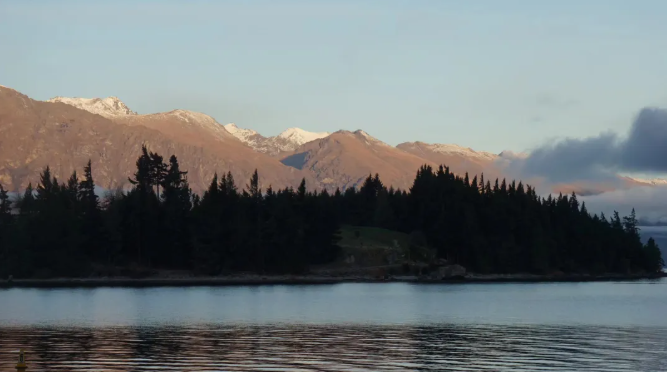 This is Lake Wakatipu in Queenstown Gardens. In a day, morning and dusk change, and every moment is beautiful beyond words.