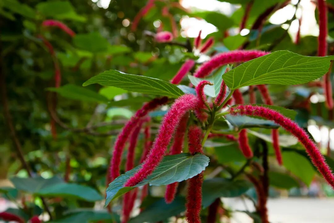 Scientific name of dog tail red Amaranth red-spike, is a shrub. Its red flower spikes are like caterpillars adsorbed between branches and leaves, and the amount of flowers is very large. Almost every long leaf will grow a lovely “caterpillar”, which is very festive and has high ornamental value.