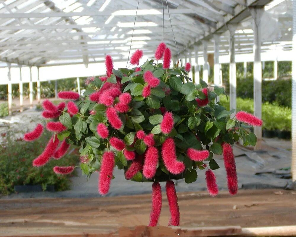 Cat-tail red is an evergreen shrub with semi-vine branches, which is suitable for hanging pot cultivation. Cat-tailed red The flower spikes are red, furry, and very shiny. They look soft and cute, like The cat’s tail is like a red caterpillar, Sui Sui Hong → Every year is red, very festive.