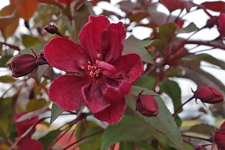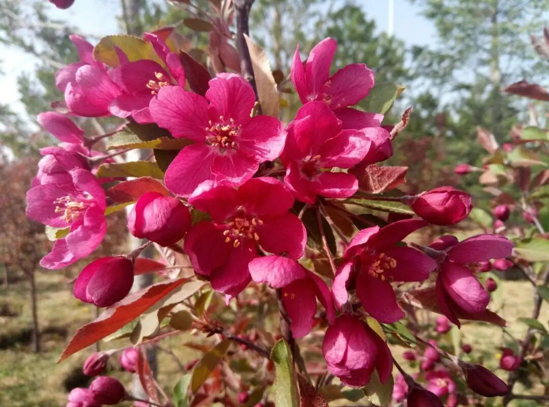 Adam Begonia is a breed of begonia called Perfect, The tree is tall, and its flowers, leaves and fruits are of ornamental value. In summer, the leaves are green with purple red, while in autumn, the leaves are orange red; Single flap cup Shape Flowers ( Flower diameter 3-5 c m) , 5-6 flowers gather together, The petals are rounded, the unopened buds are deep red, and the blooming flowers are deep magenta (the color fades at the heart of the flower); The fruit is olive-shaped (fruit diameter 1.3-2 cm), with large fruit quantity. It is light burgundy red in summer, thick red when mature, and gradually turns dark red in winter. It does not fall through winter.