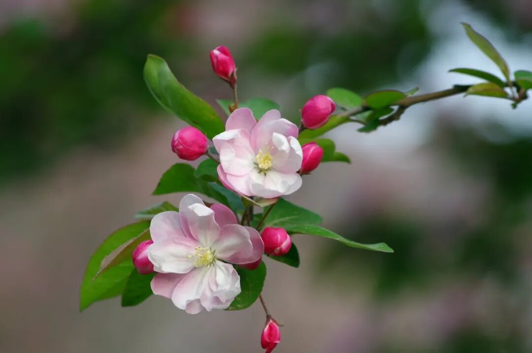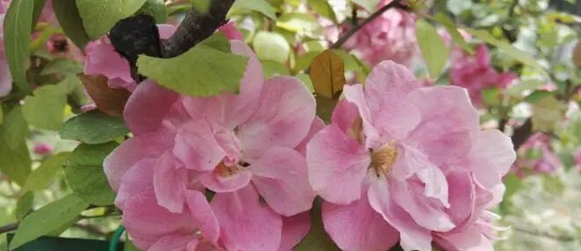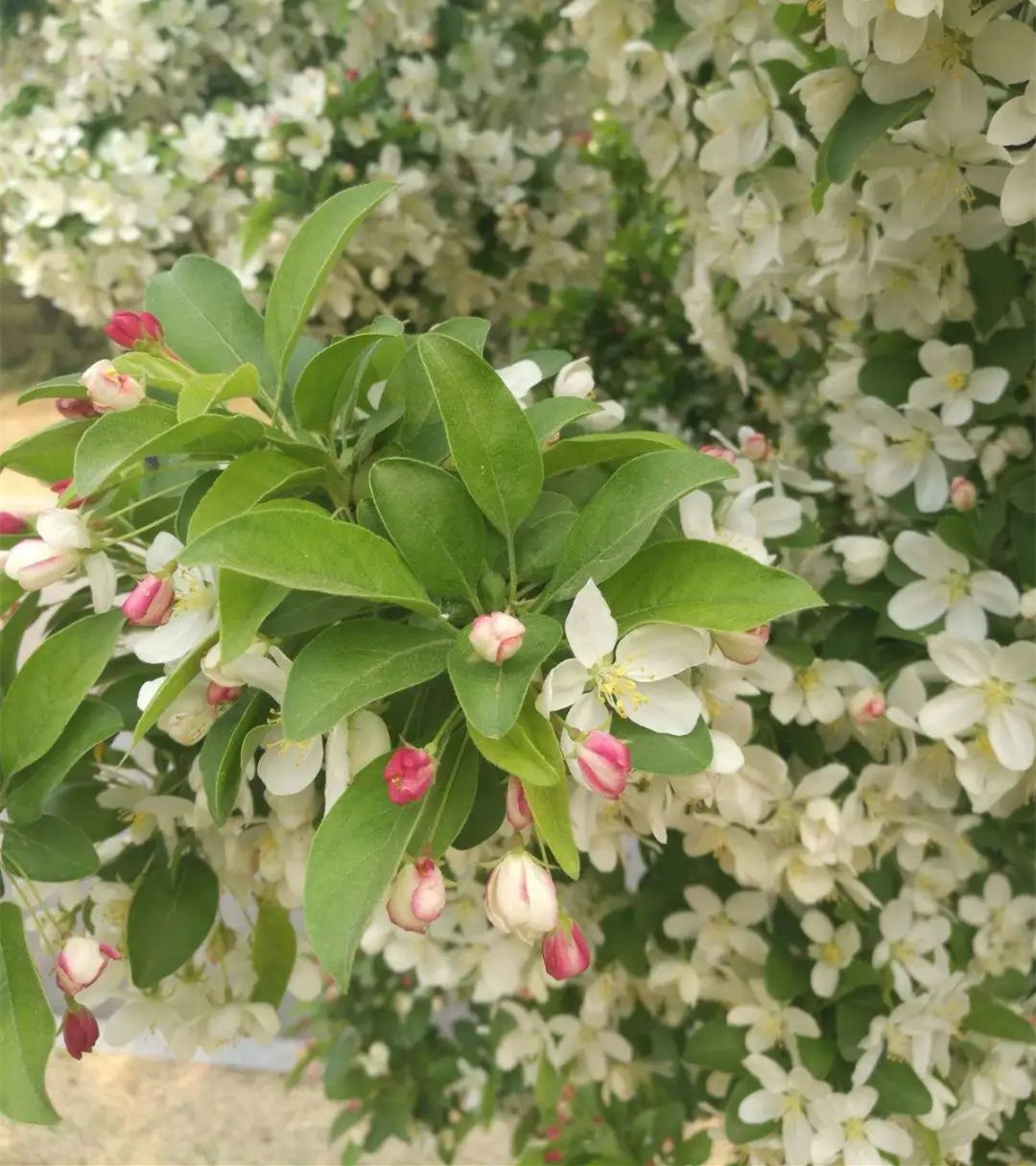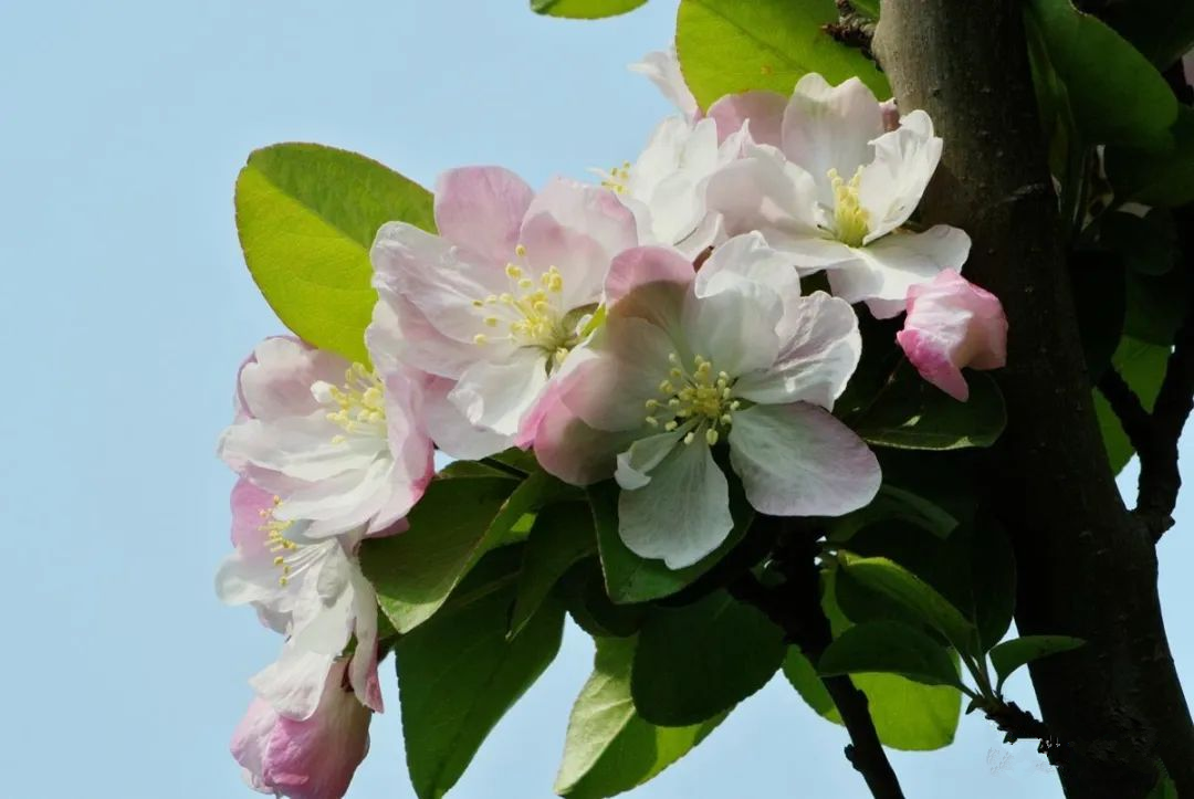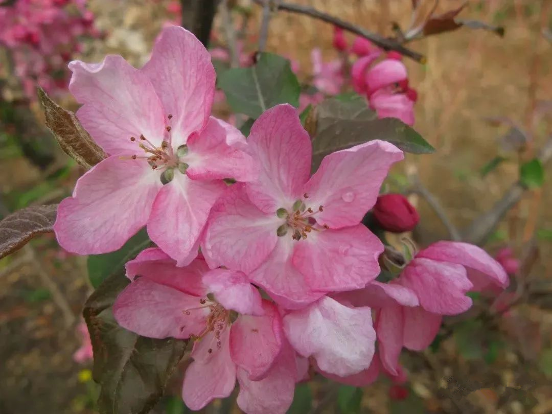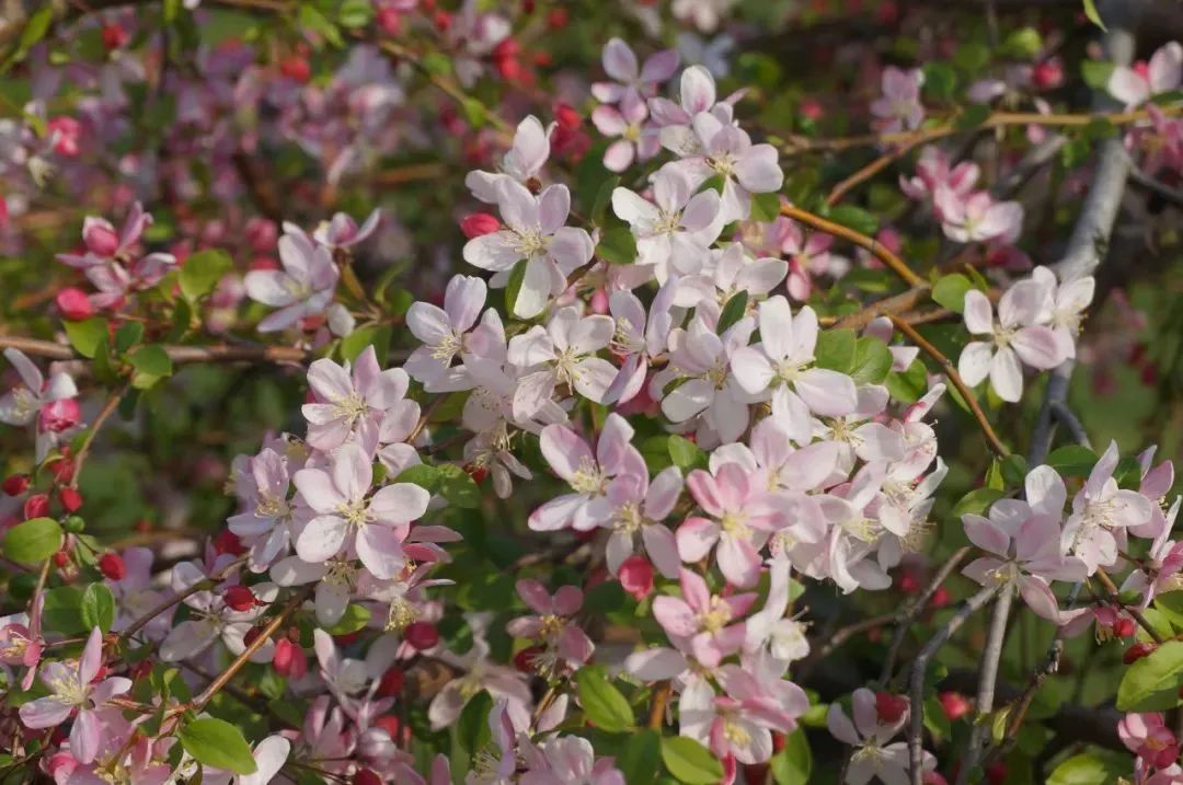 Begonia crabapple Open Semi-double flower ( Single-petaled flowers too) , usually 5-7 Flowers grow in clusters of branches. Common crabapples include Two Species, one is Long stalk, flowers Hanging down, flower Presented before opening Red, After full opening Post It is rose red; Another A flower Small with short pedicel, Flower color nearly white 。