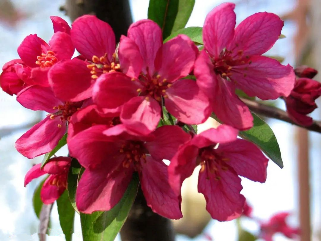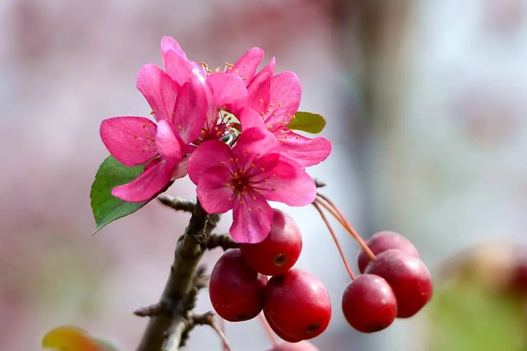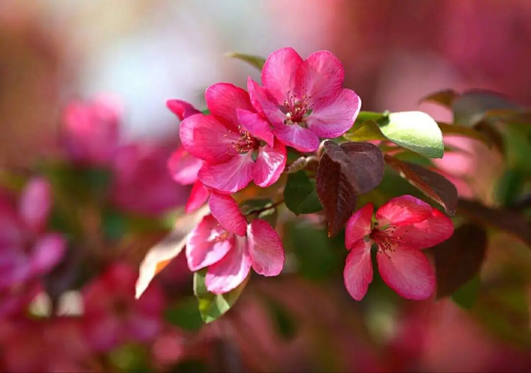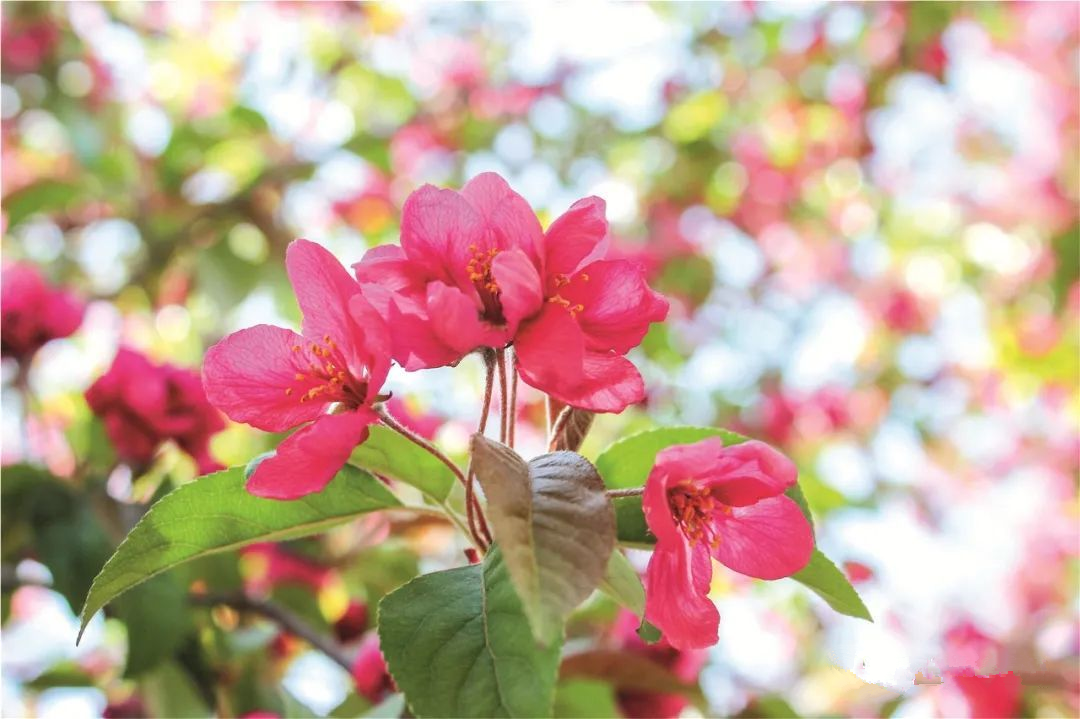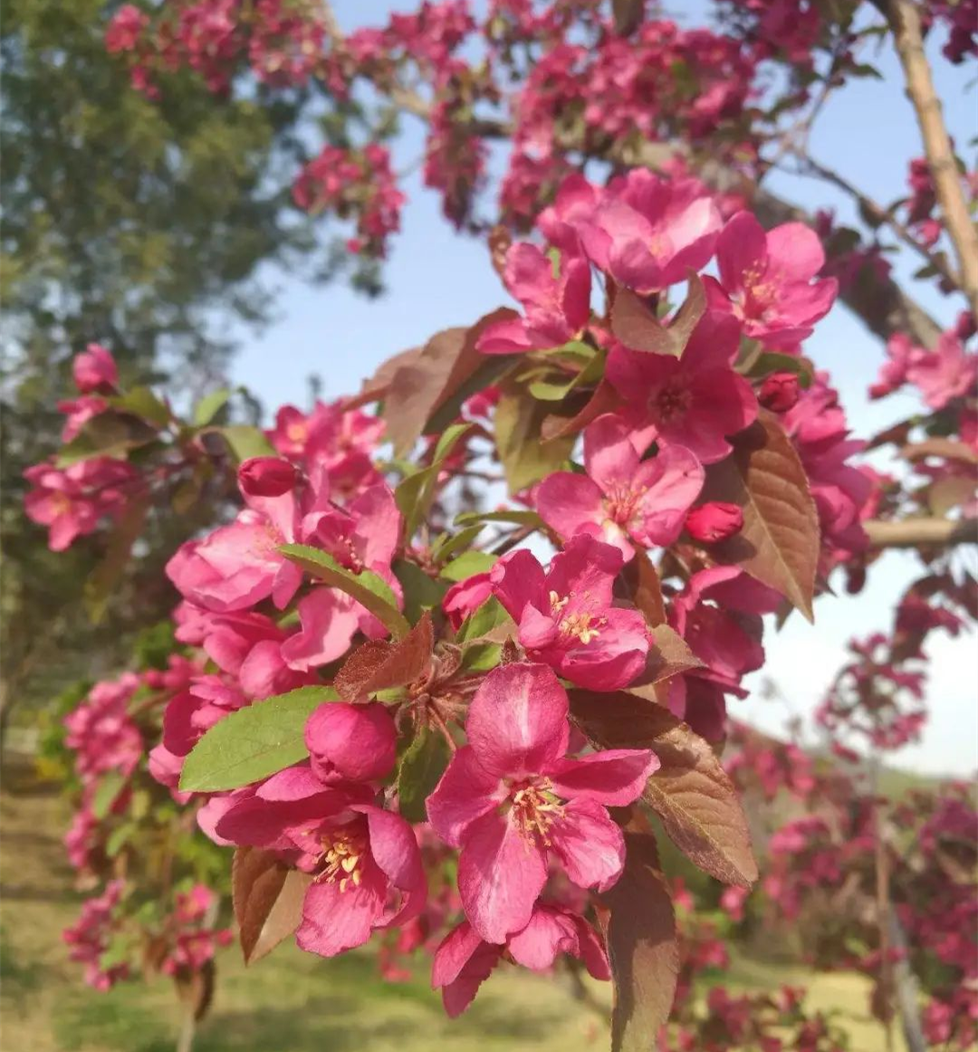 Begonia crabapple Open Semi-double flower ( Single-petaled flowers too) , usually 5-7 Flowers grow in clusters of branches. Common crabapples include Two Species, one is Long stalk, flowers Hanging down, flower Presented before opening Red, After full opening Post It is rose red; Another A flower Small with short pedicel, Flower color nearly white 。