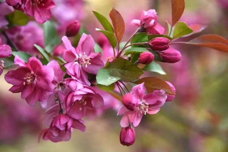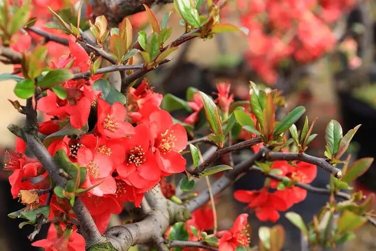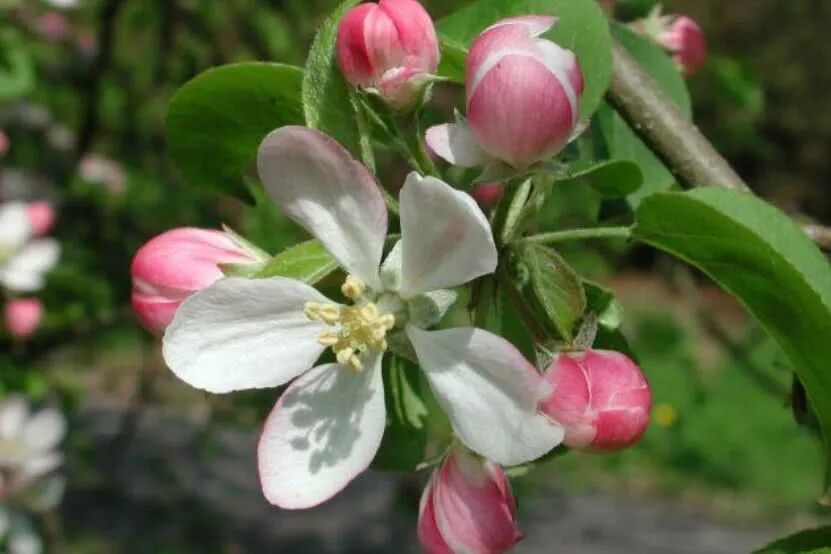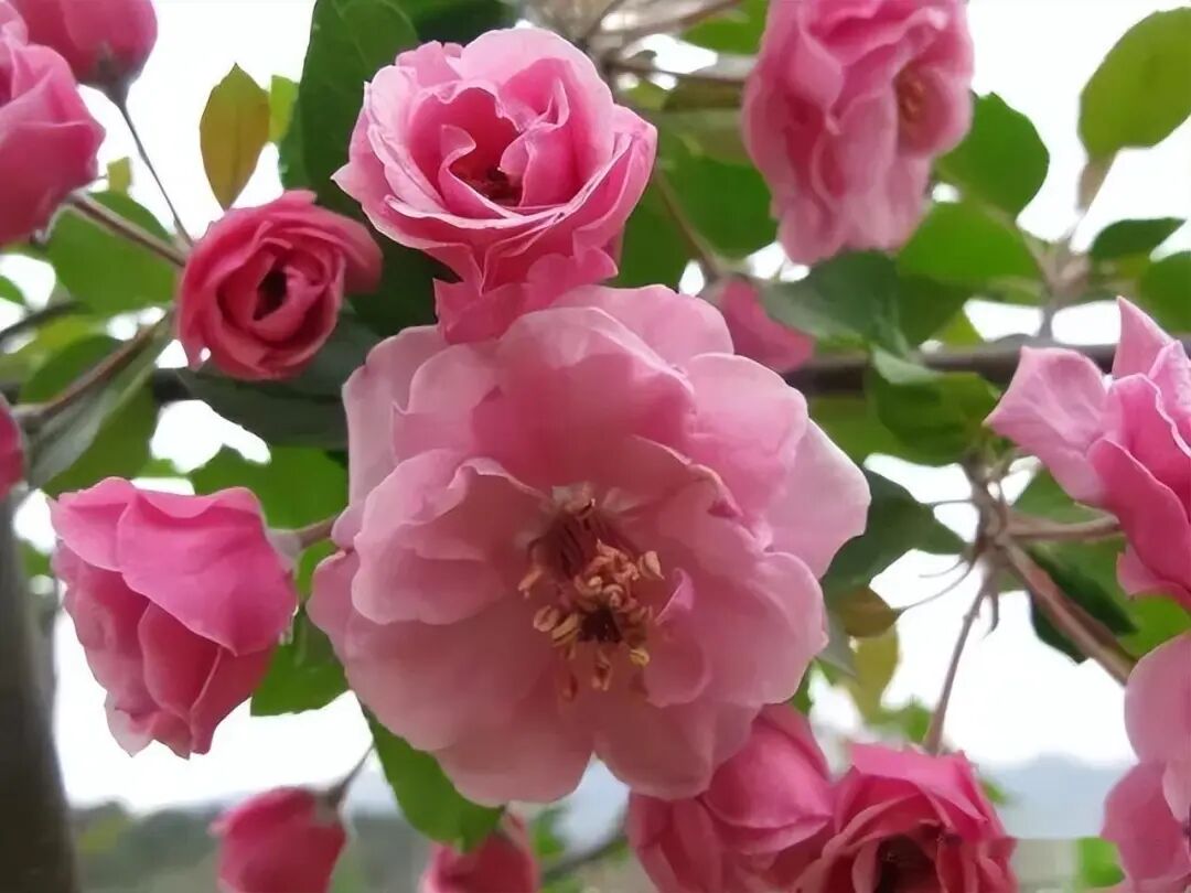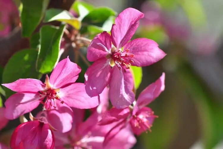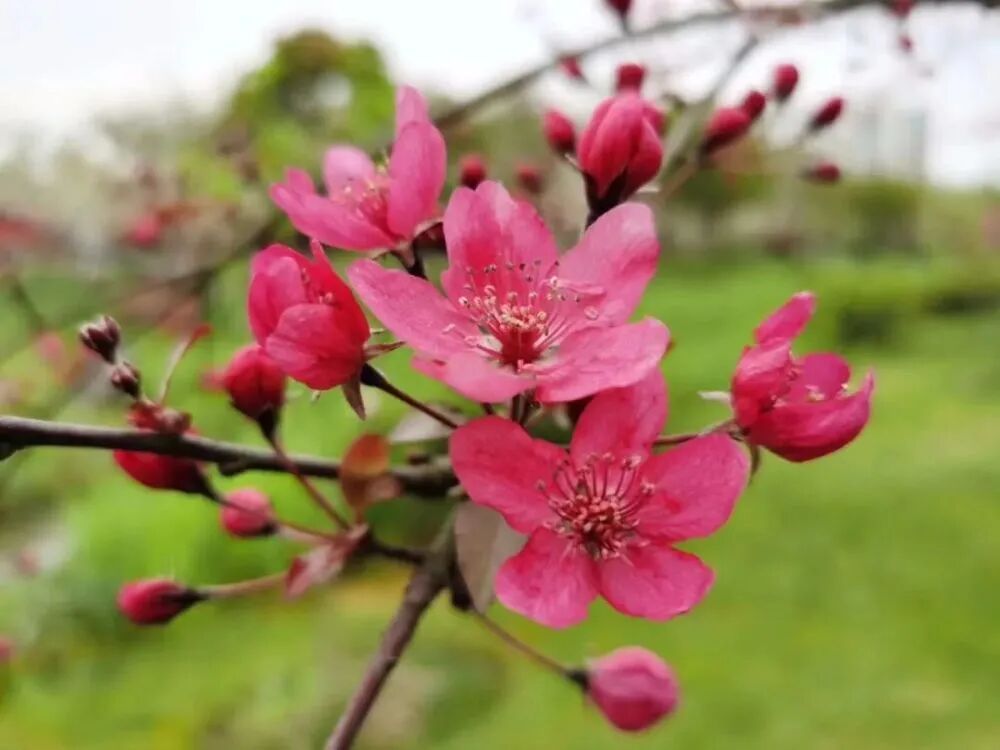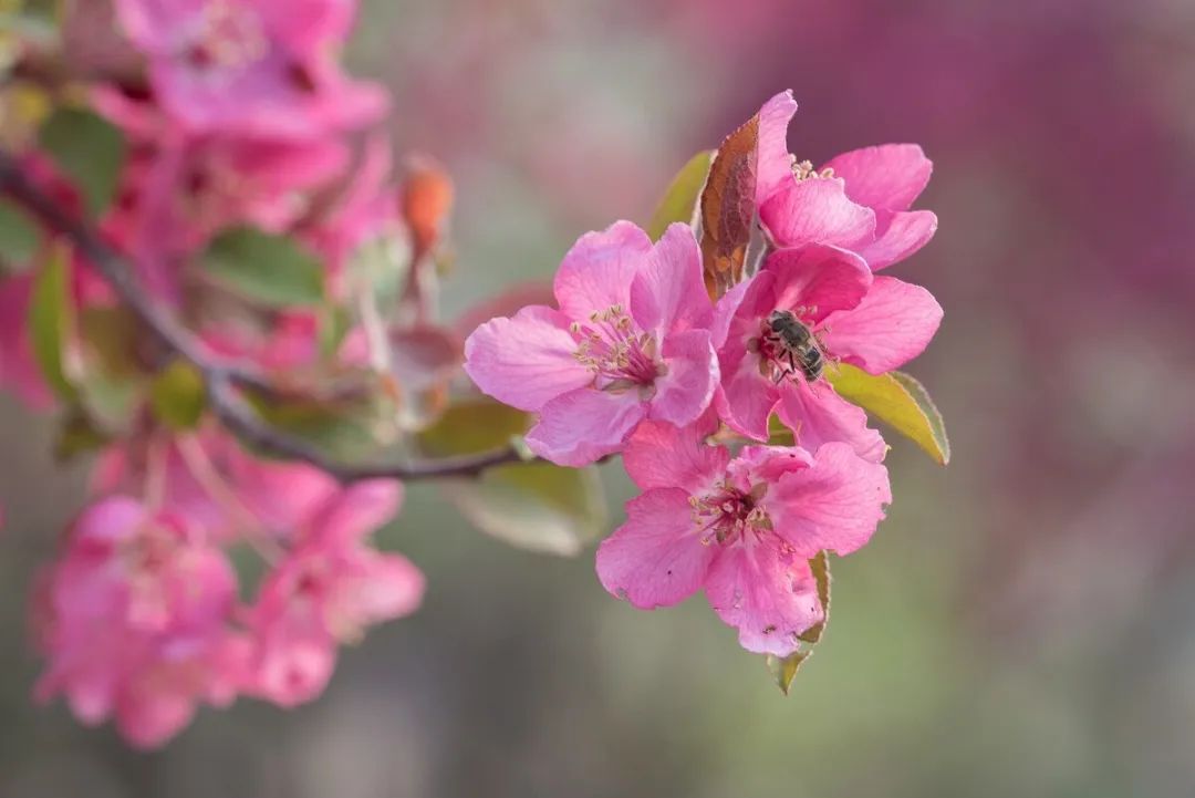Begonia crabapple Open Semi-double flower ( Single-petaled flowers too) , usually 5-7 Flowers grow in clusters of branches. Common crabapples include Two Species, one is Long stalk, flowers Hanging down, flower Presented before opening Red, After full opening Post It is rose red; Another A flower Small with short pedicel, Flower color nearly white 。