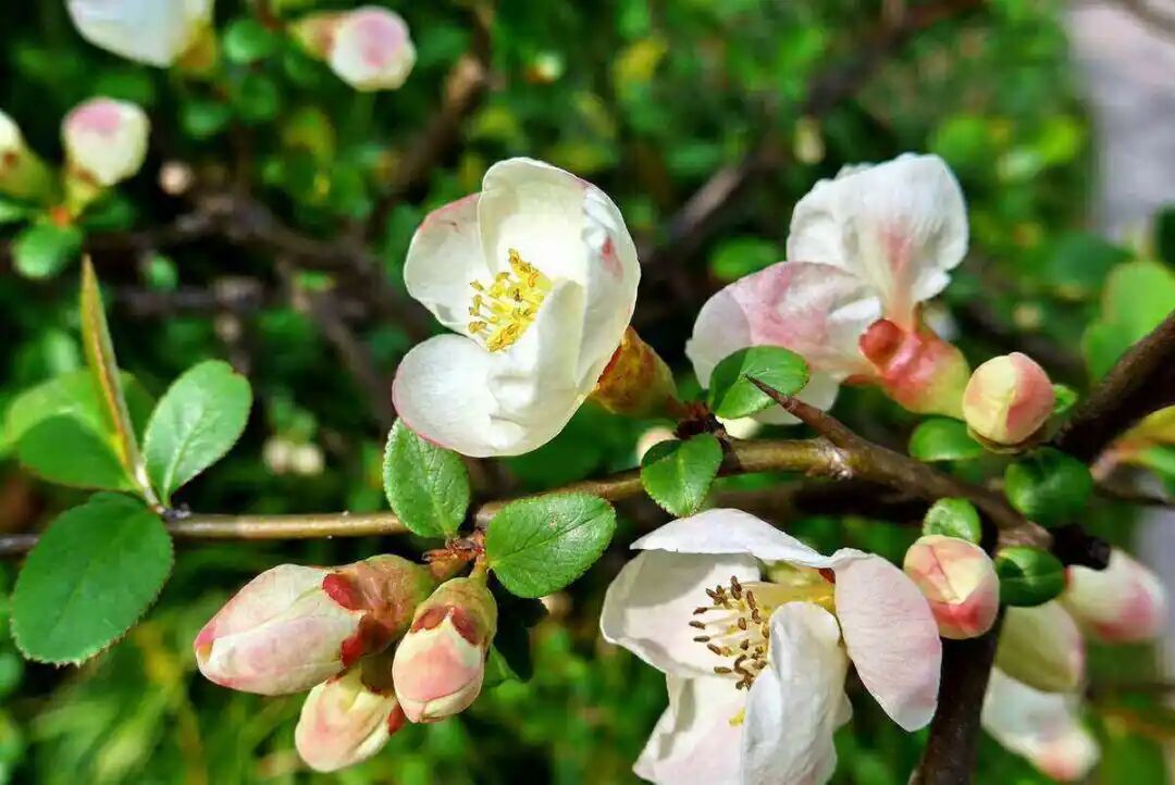 Hawthorn and begonia have single-petaled flowers ( Flower diameter about 3.5 cm), Obovate Petals, white flower color (pink on the back of petals), Flowering period May-June.