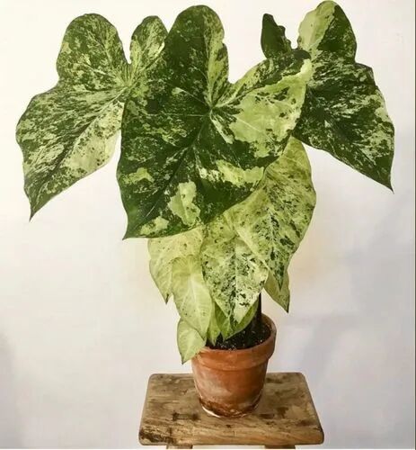 Also known as camouflage taro, green Blade random intersperse Dark green, light green and yellow patches inadvertently exude some wild charm.