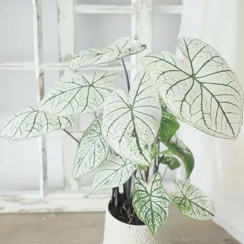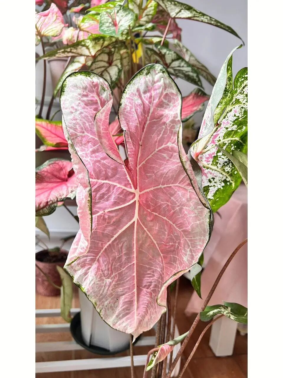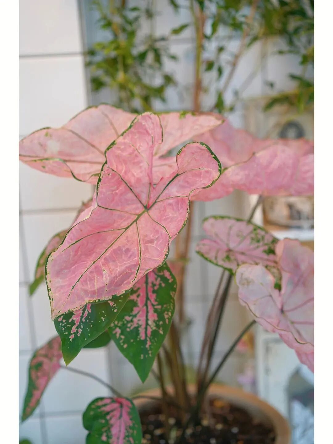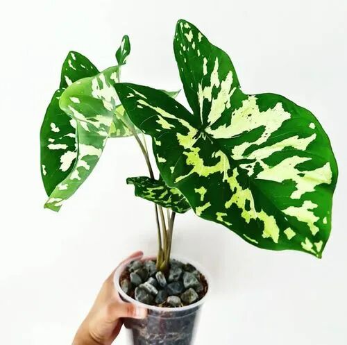 A very rare variety of colored taro with white veins and dark green leaves, looming leaves Sprinkle some Pink patches, alternative but eye-catching.