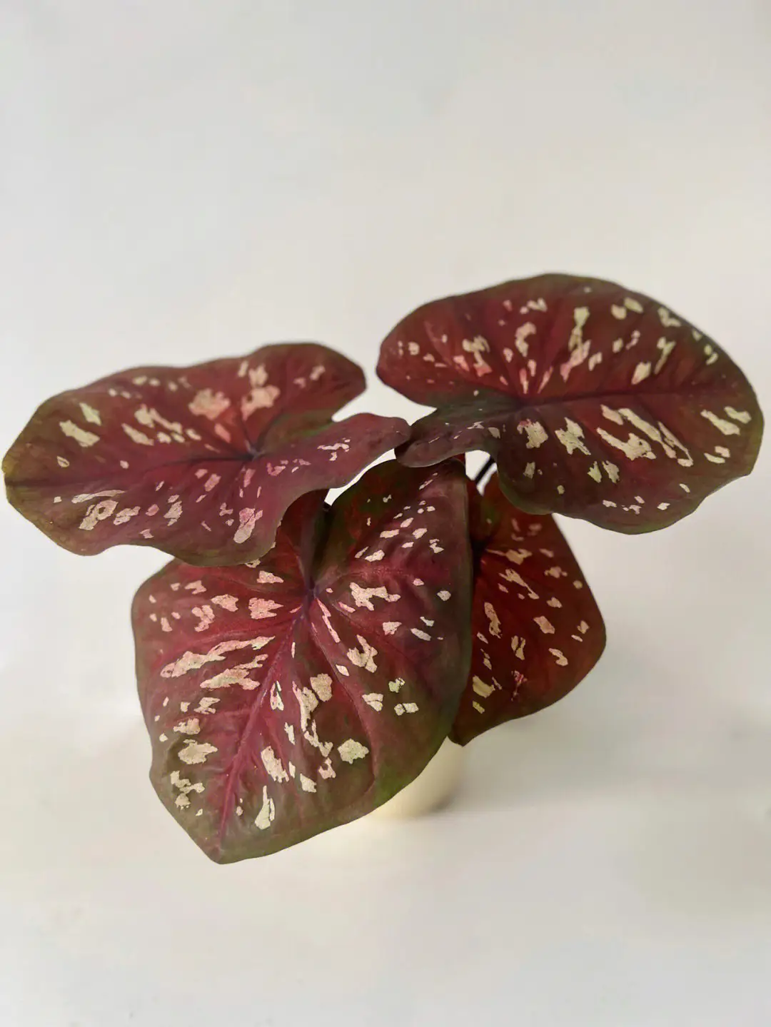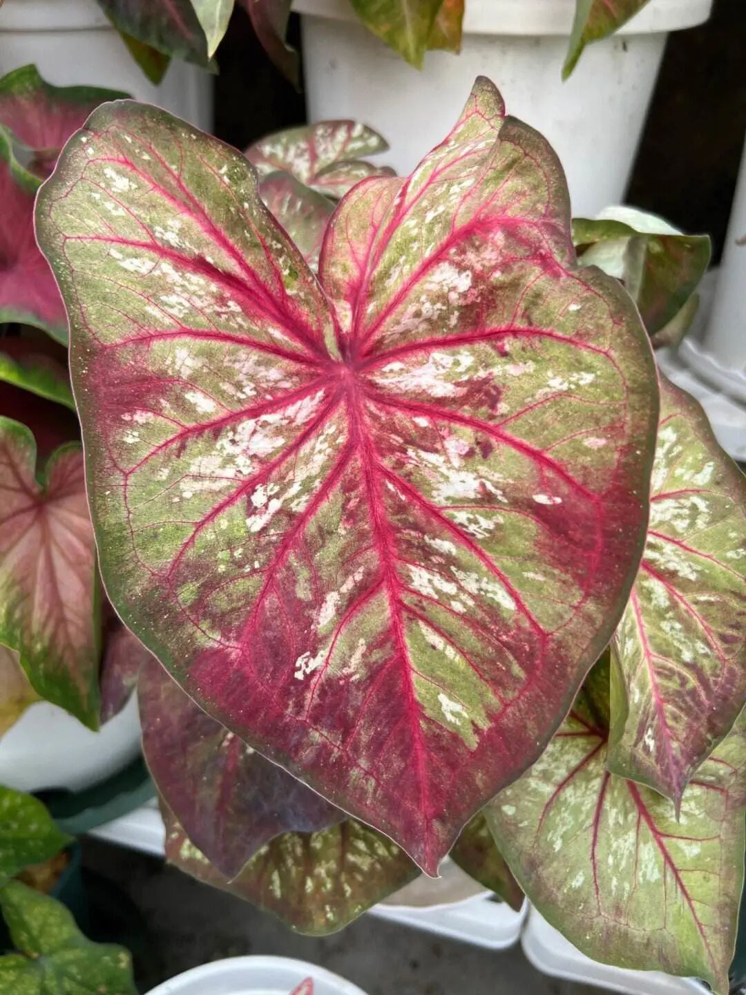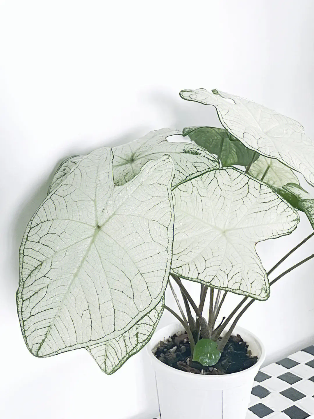 A very rare variety of colored taro with white veins and dark green leaves, looming leaves Sprinkle some Pink patches, alternative but eye-catching.