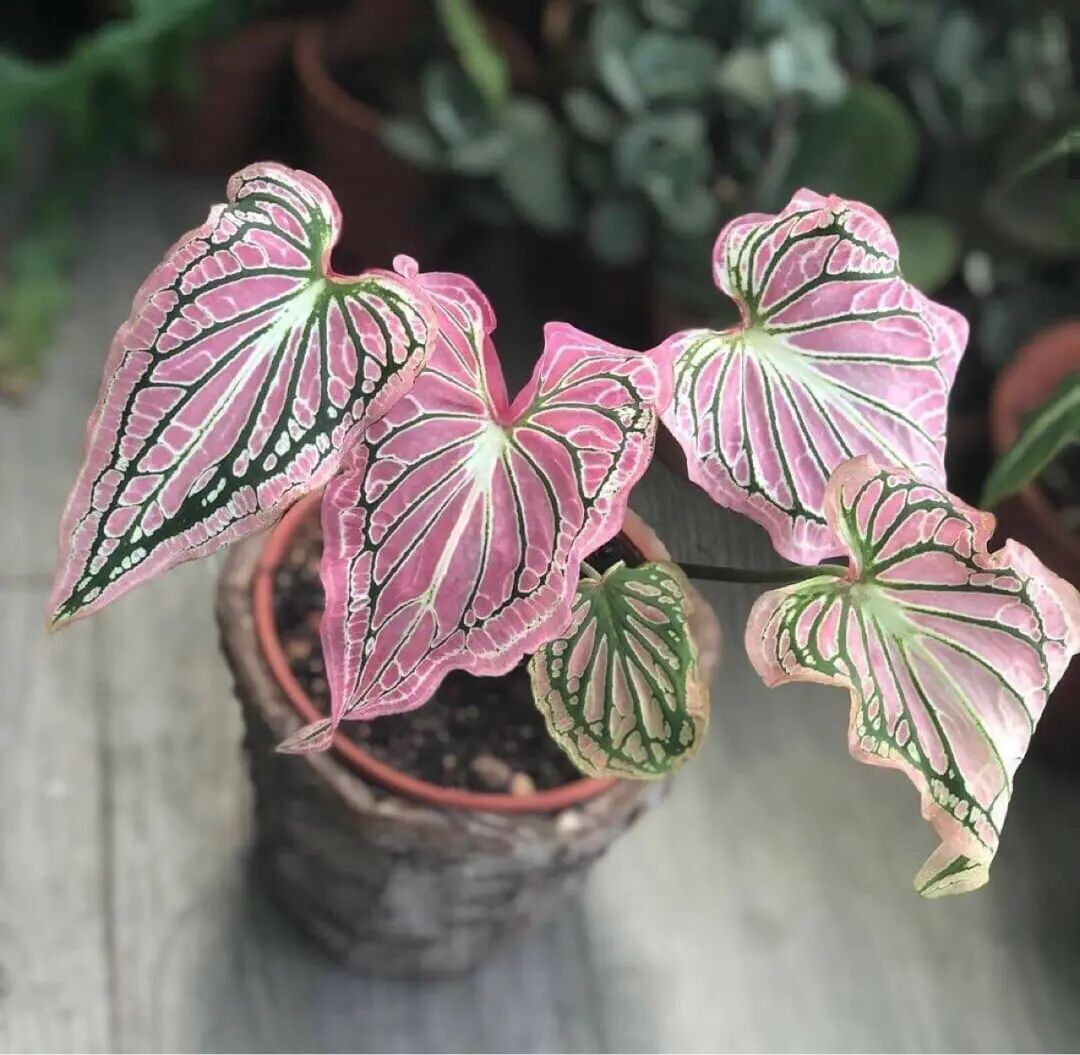 AKA Thai Beauty, Dark green veins are clearly visible, With pink leaf color, the leaves are very transparent, and the whole leaf looks like the wings of a butterfly.