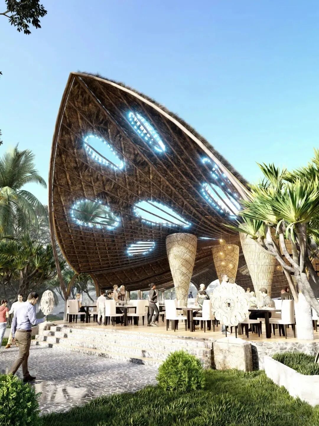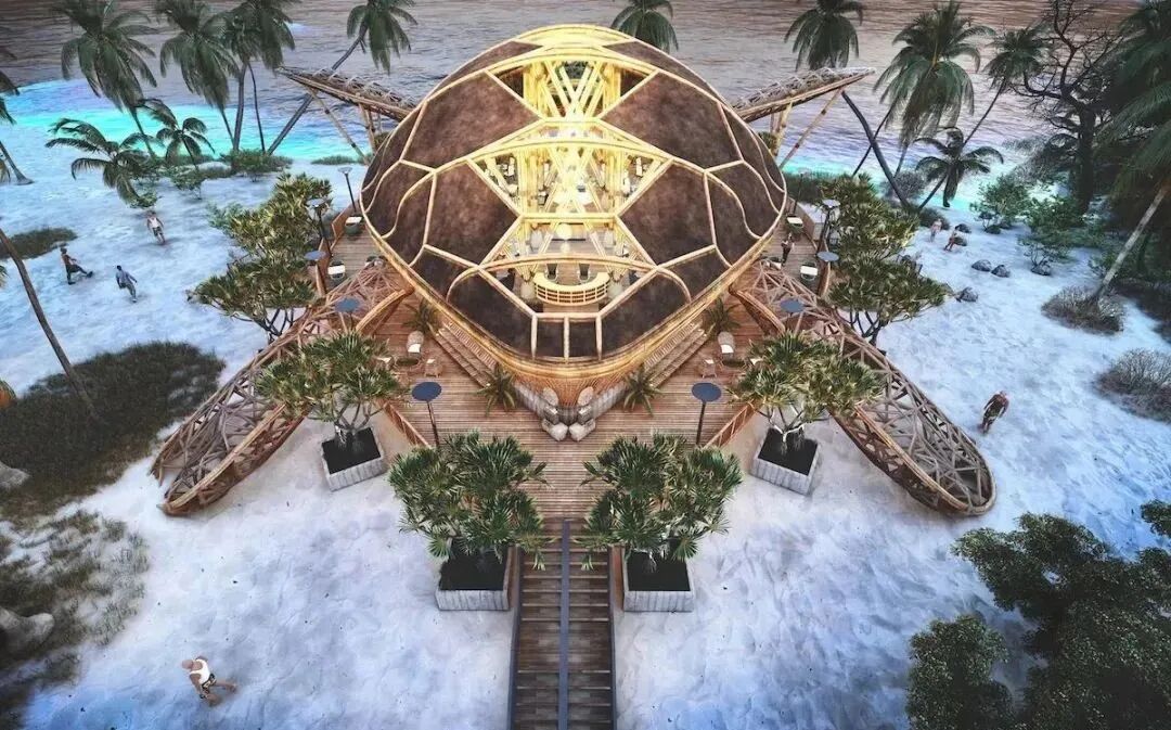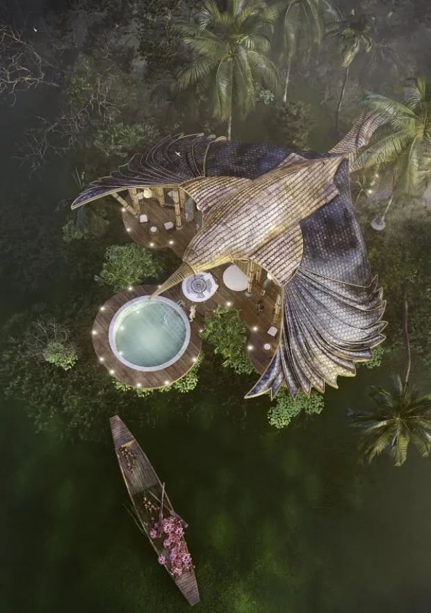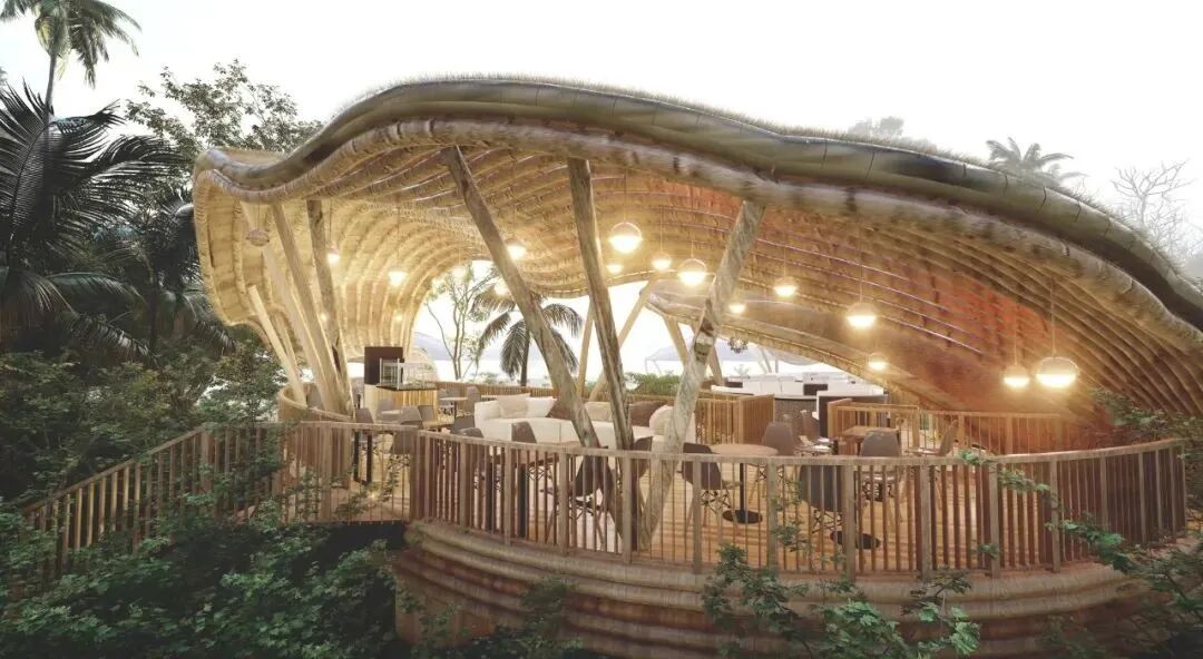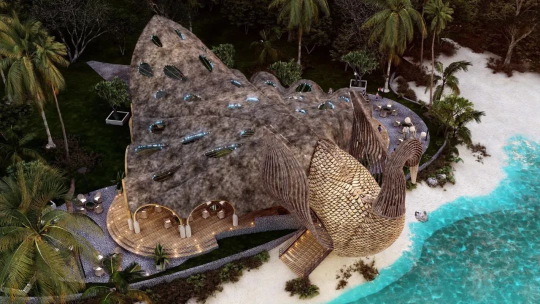Lyanna wanted to show the magnificence of peacocks and designed this beach restaurant in its shape.