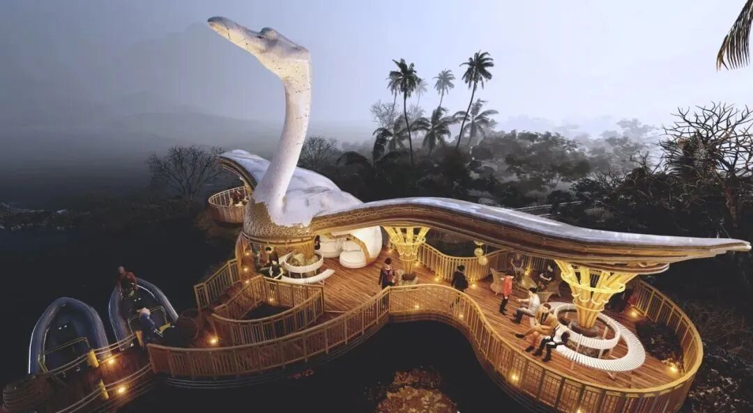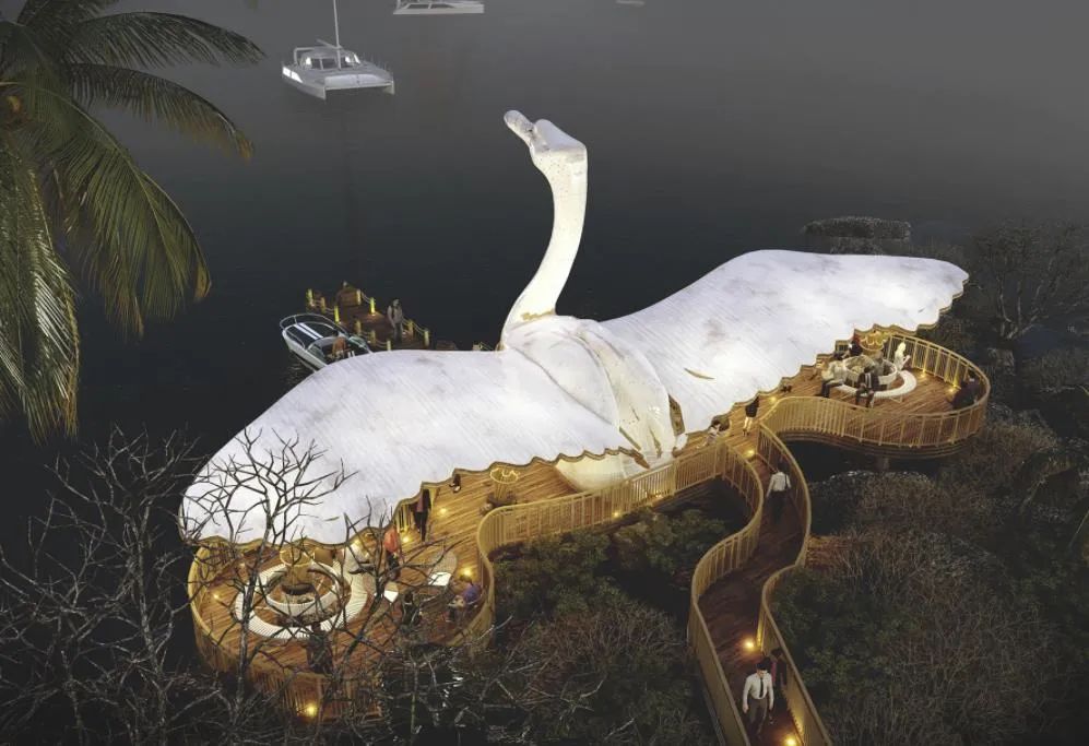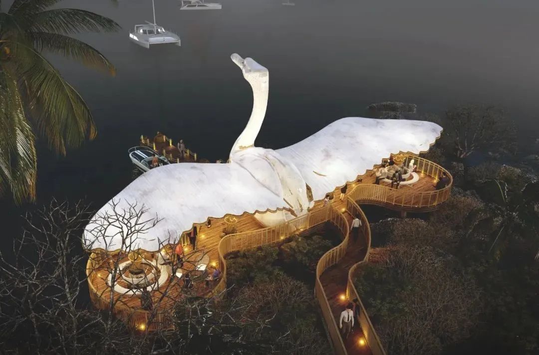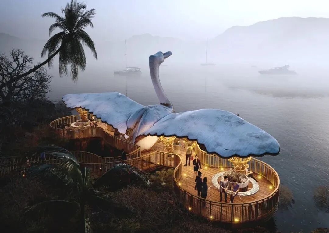 When you think of elegance, you will think of the posture of the swan. Sometimes bending your neck and bowing your head, being quiet is better than a fairy. Lyanna designed this houseboat dock for tourists to rest based on swans.