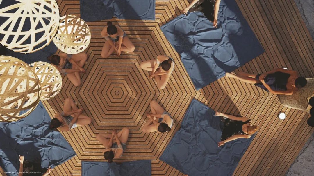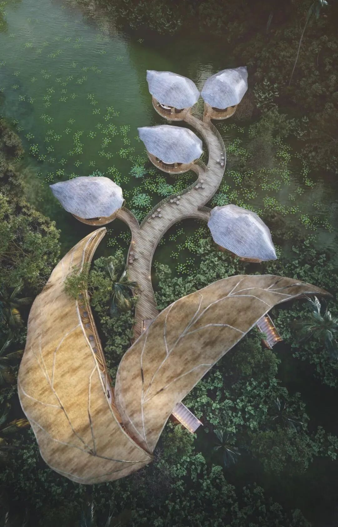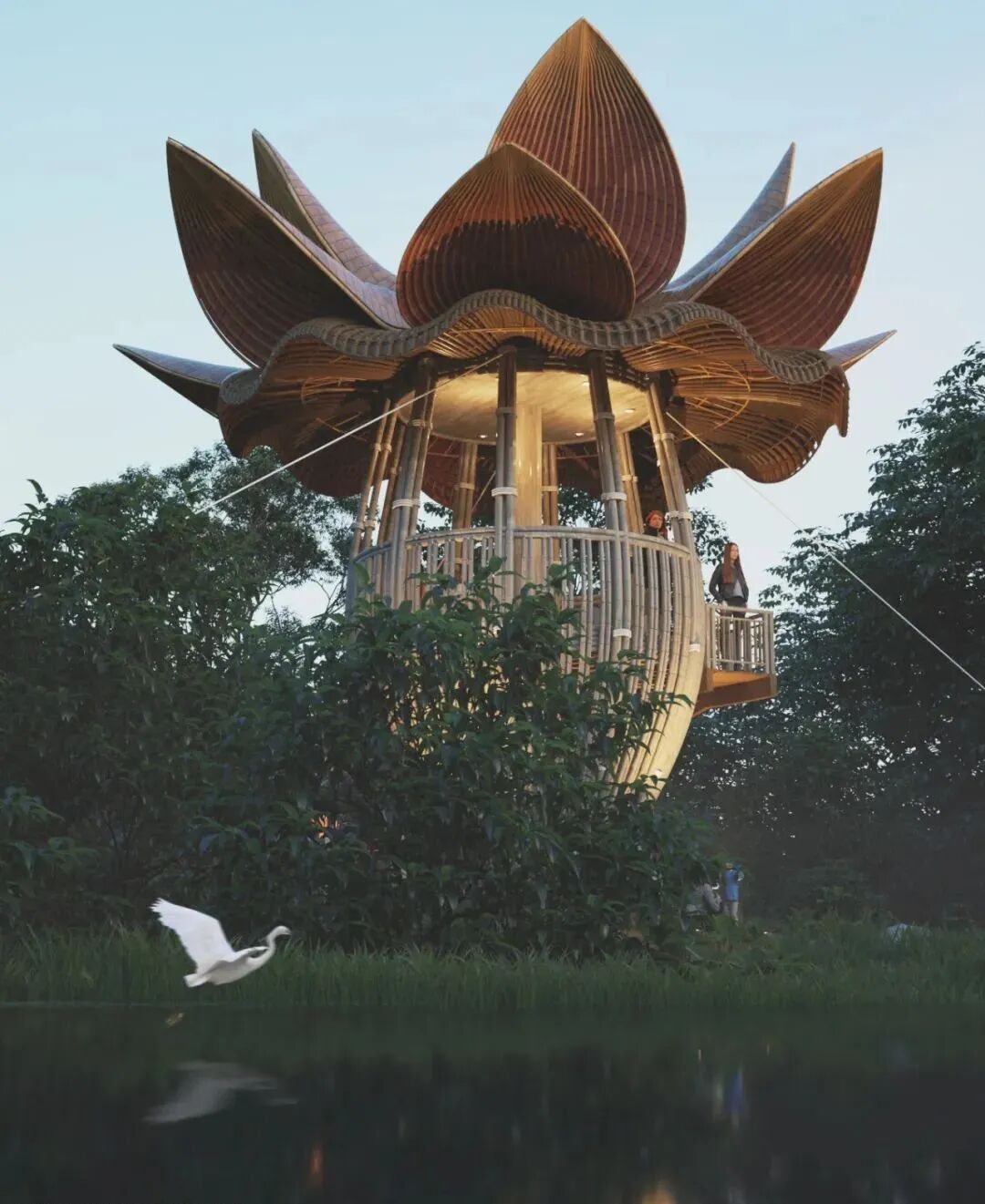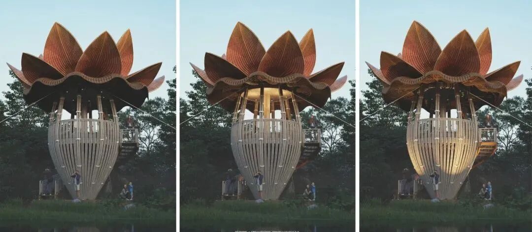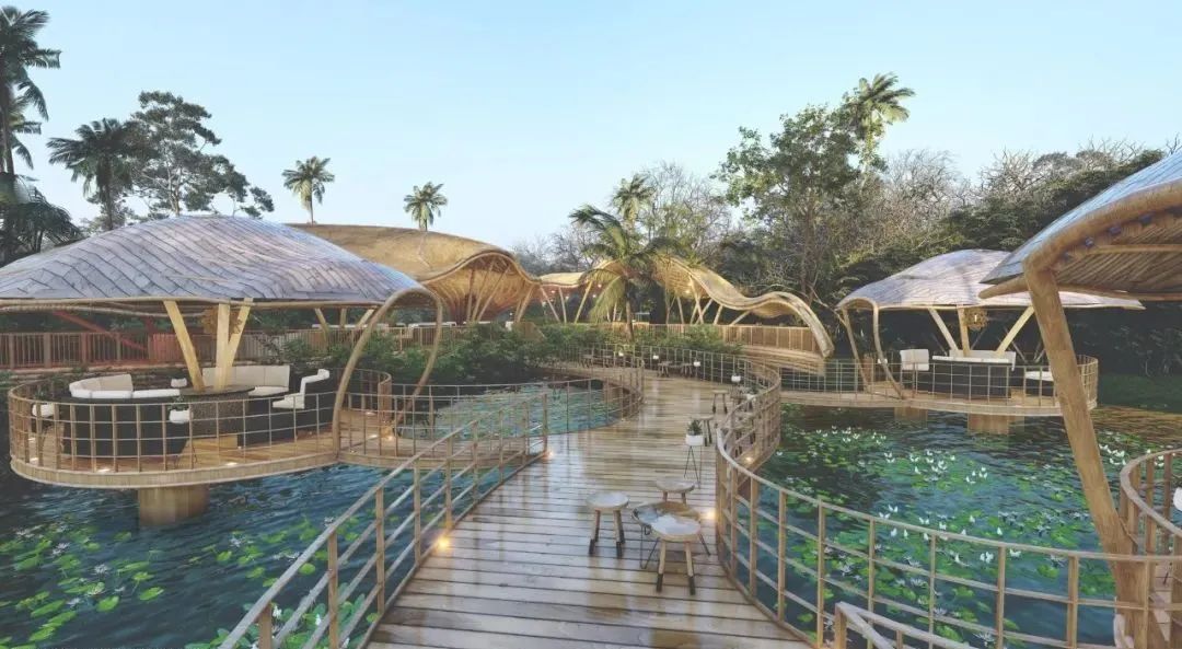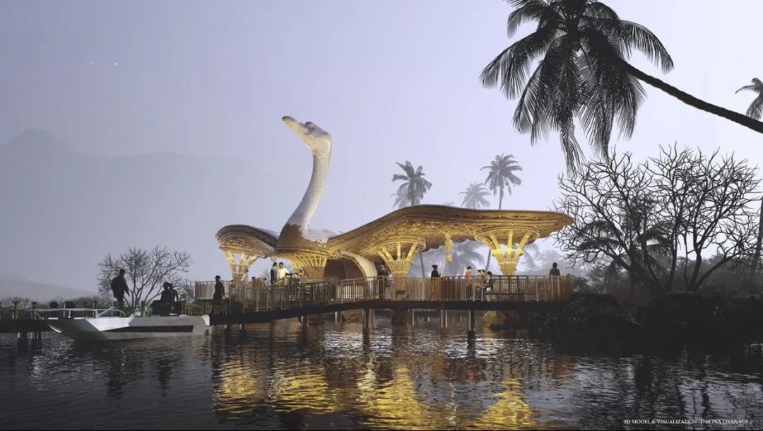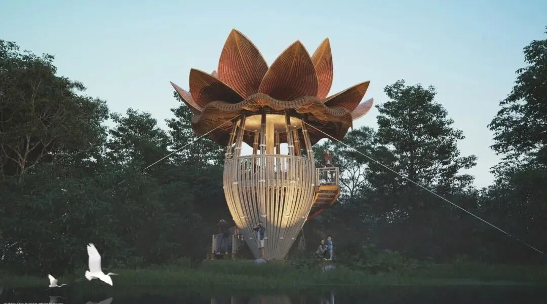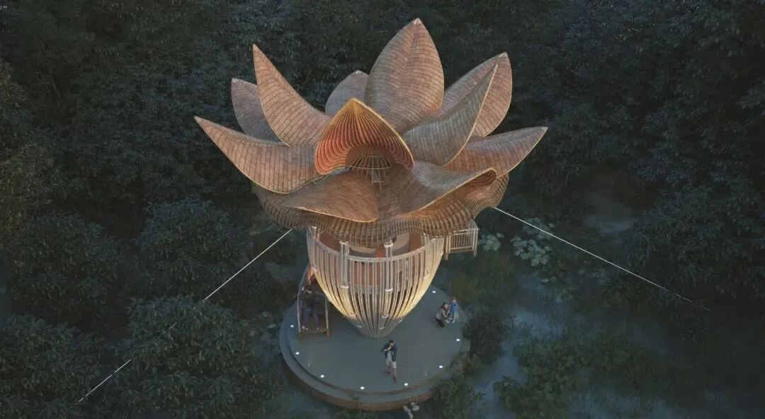 The Banana Flower Observation Deck built in the wetland park is a design that Lianna likes very much, inspired by the environment around him. Banana trees and their flowers and fruits are part of everyday life in Sri Lanka.
