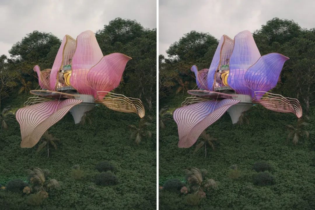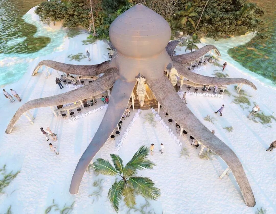 In addition to bighorn sheep, Lianna’s imaginative library includes a variety of animal and plant forms. For example, vertical villas in the shape of hawks, cafes in the shape of jaguars, and beach bars in the shape of octopuses. All creatures are the source of his creativity, constantly enriching his growing world of conceptual design.
