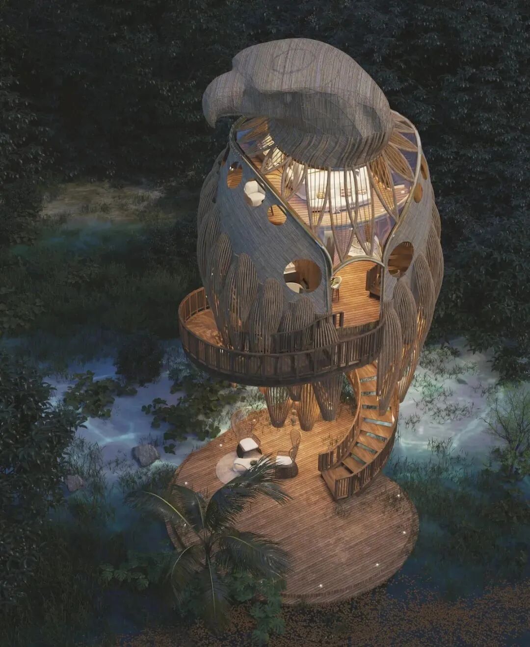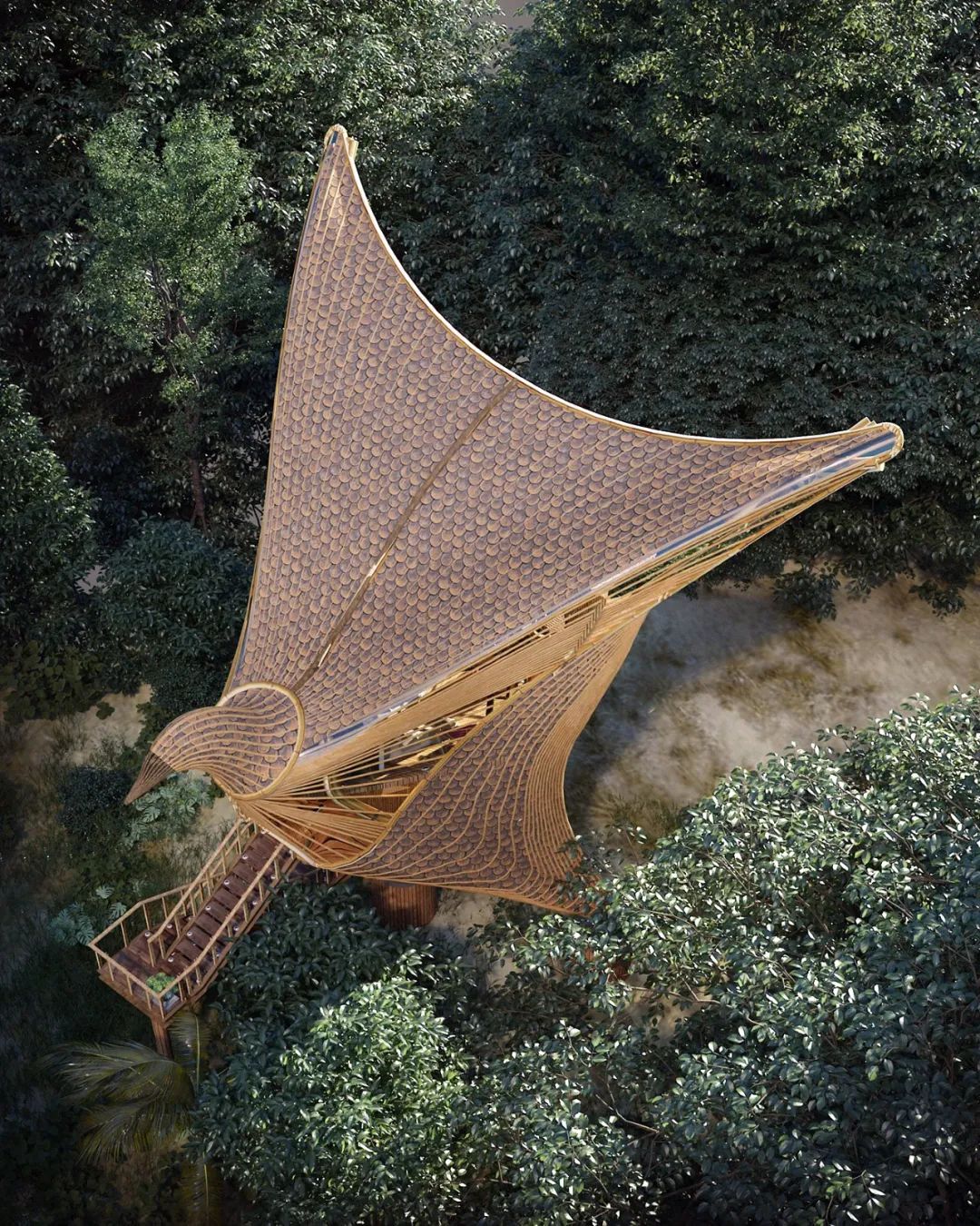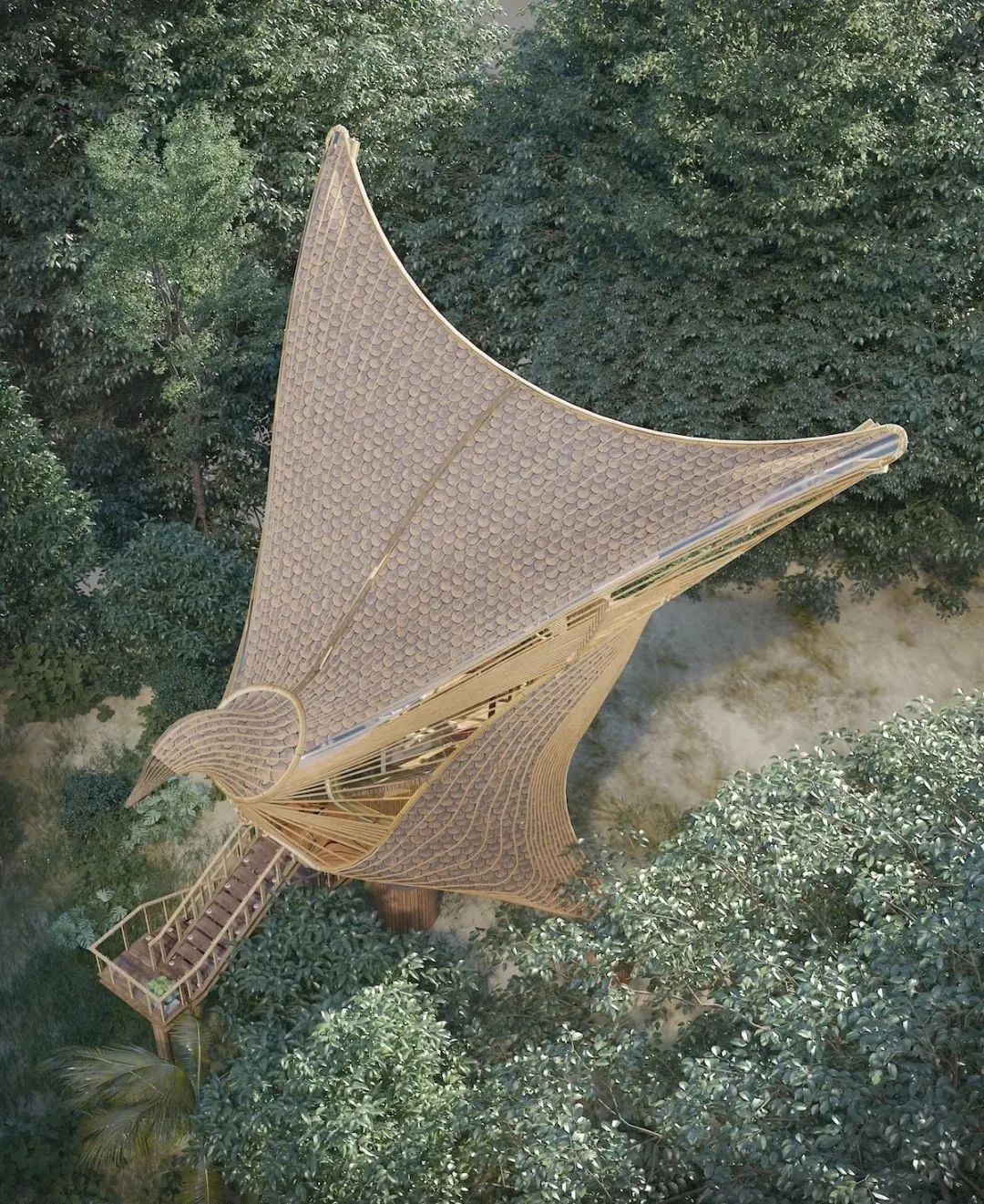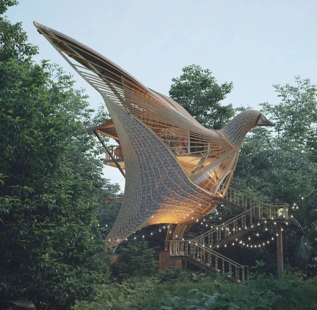 Today, let’s get closer to the natural architecture designer-Thilina Liyanage. His works are inspired by birds, animals, flowers and plants, and the materials are taken from bamboo forests and trees. He used his imagination as a bridge to build an amazing “new life” on the earth.