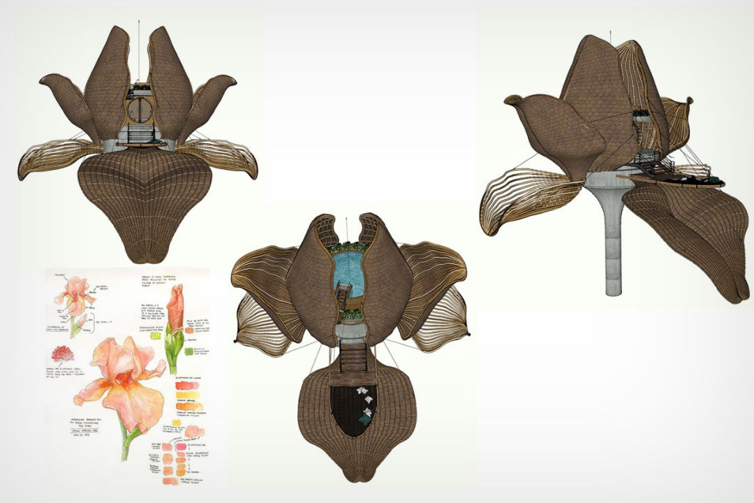 “My design was inspired by a banana flower near the house, which inspired me to design this piece that can be used as an outdoor observation platform. The curved staircase, circular platform and safety railing make the observation platform a beautiful sight in itself.”