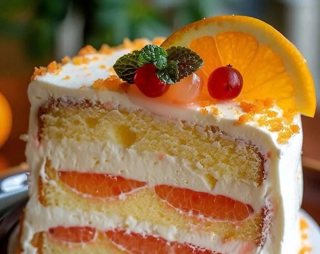 ✨ Enjoy this soft and creamy cake bursting with orange flavor! ?